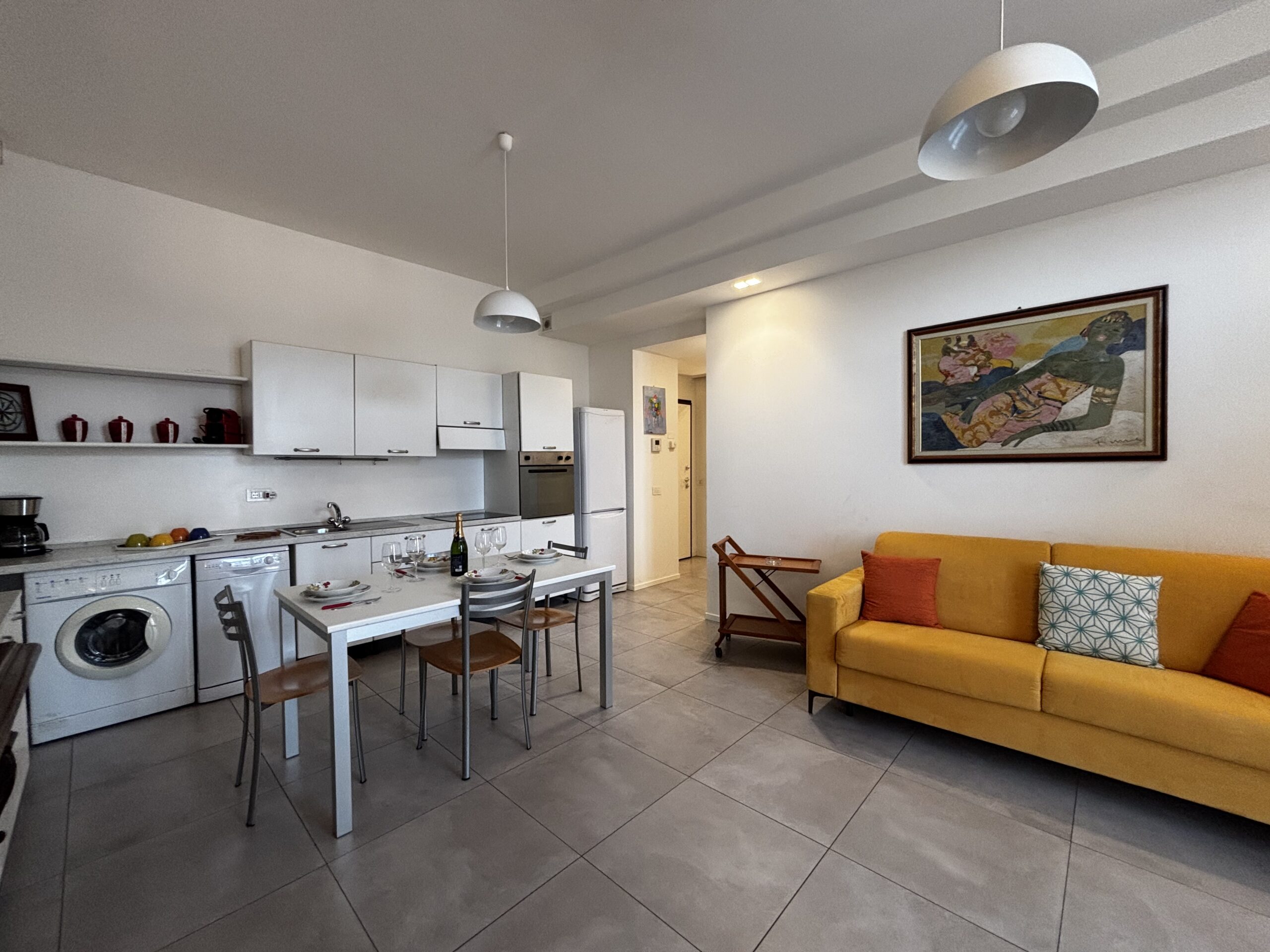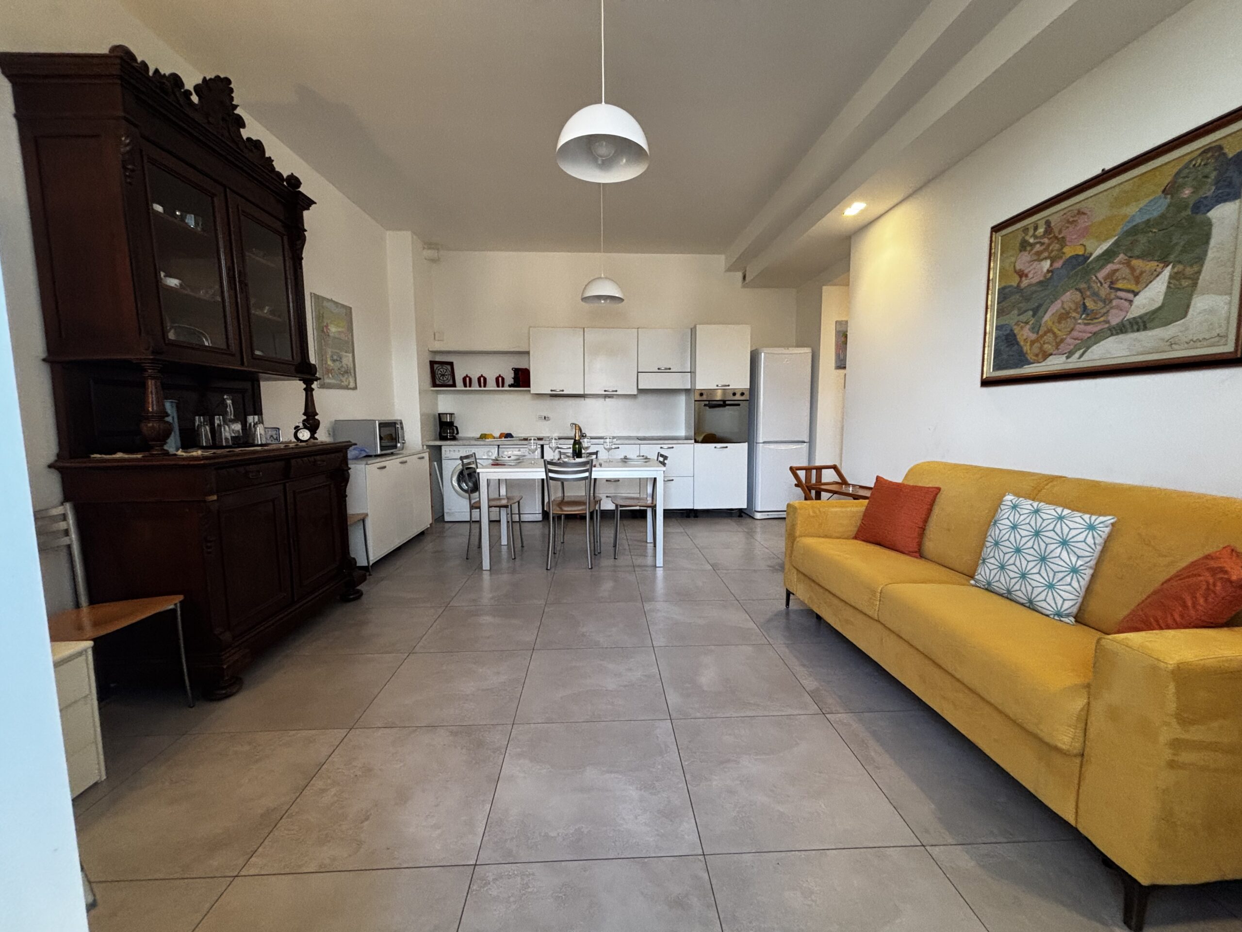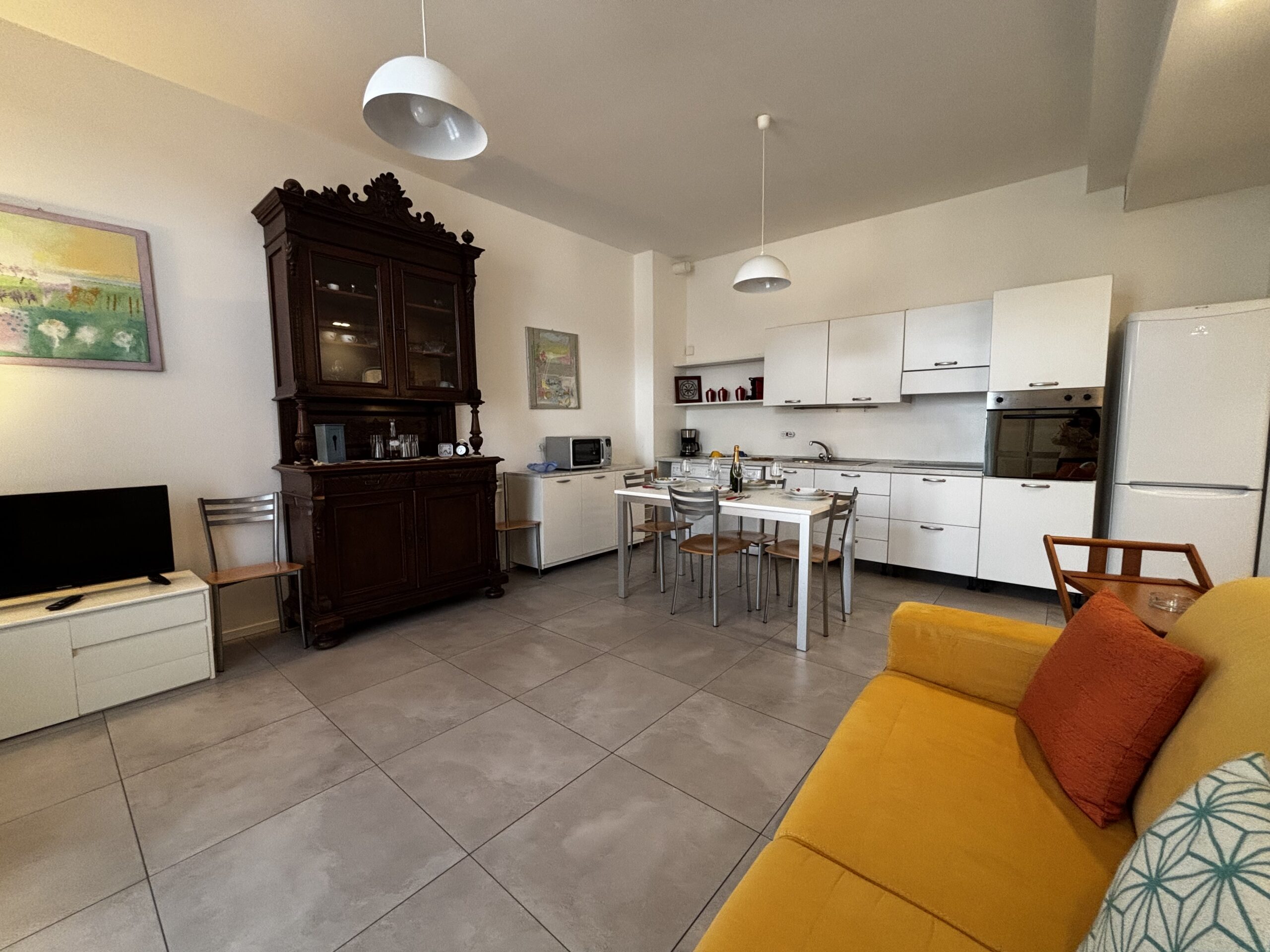 On the second floor of Casa Al Parco there is a charming, tastefully furnished two-room apartment with a surface area of 60 m². It consists of a large living room with a double sofa bed and a simple but well-equipped kitchenette, a simple bathroom, and a bedroom with built-in wardrobe, providing a total of 4 sleeping places. The outdoor area includes a small balcony overlooking the large public park “Il Boschetto”, a cool and shady area particularly suitable for families with children.