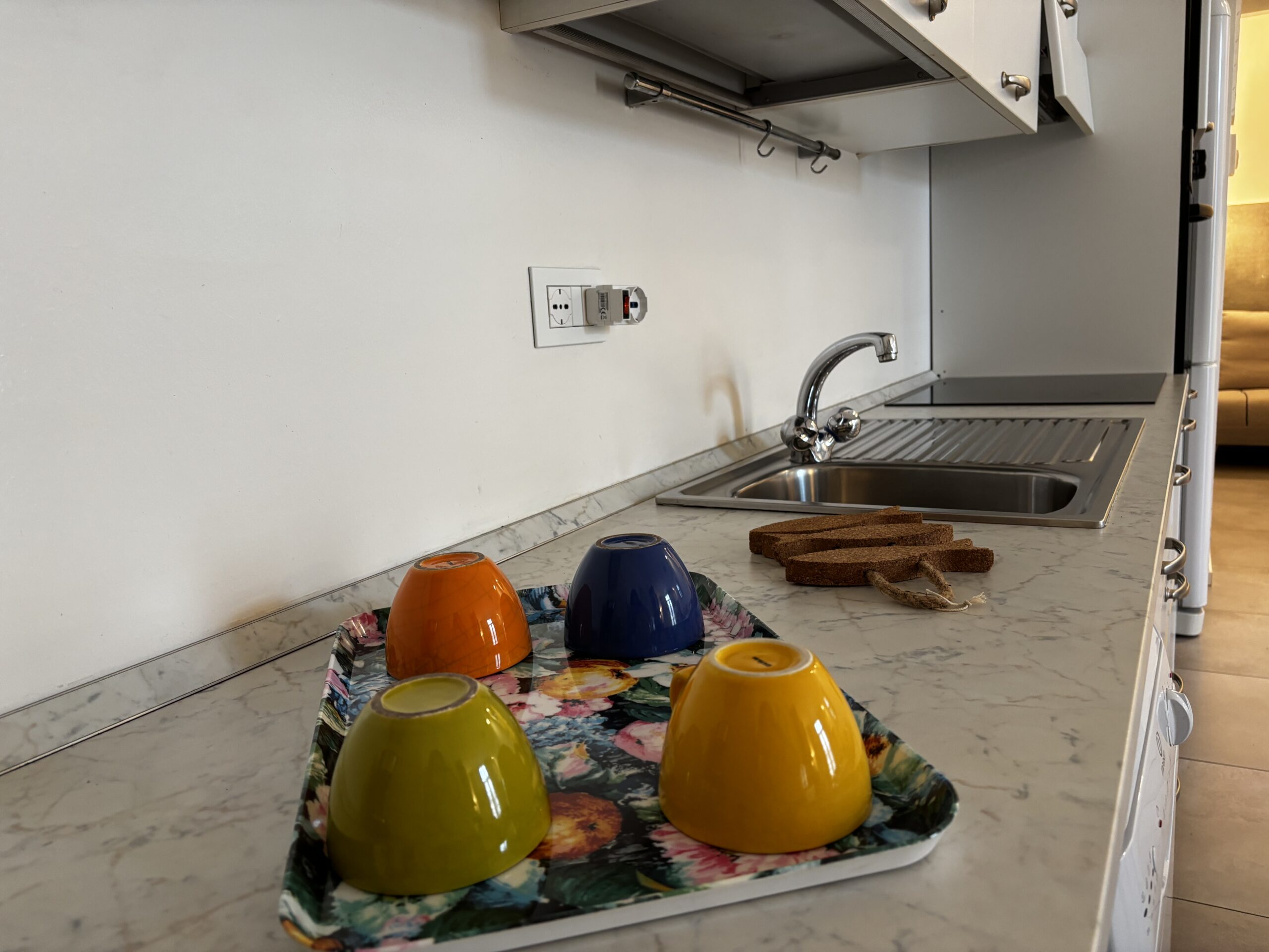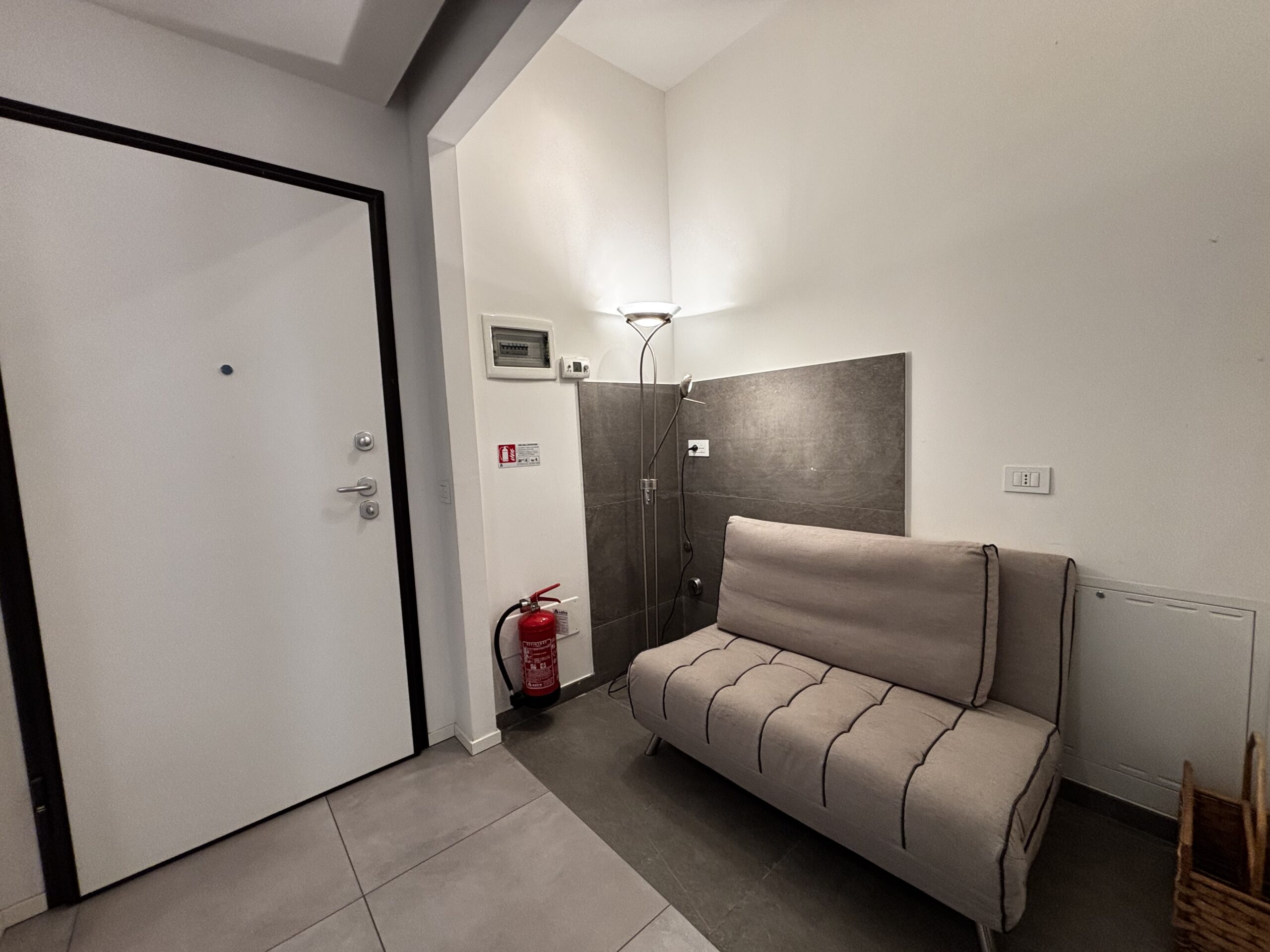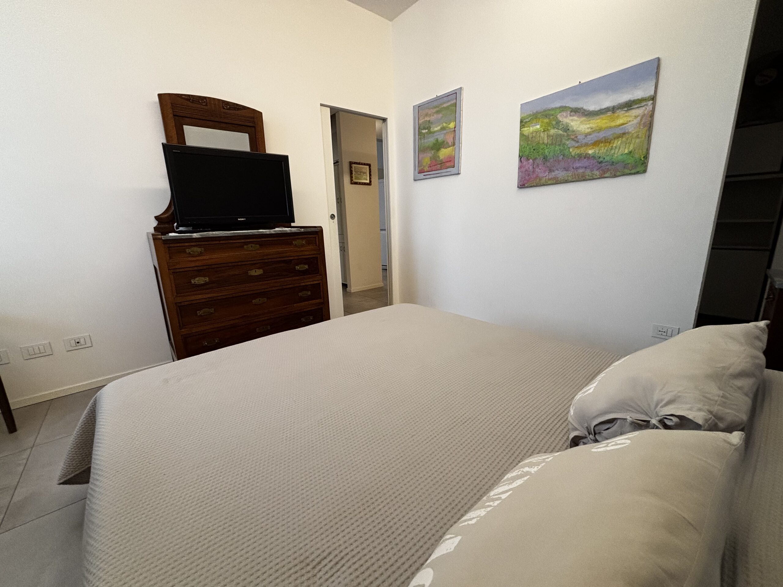 On the second floor of Casa Al Parco there is a charming, tastefully furnished two-room apartment with a surface area of 60 m². It consists of a large living room with a double sofa bed and a simple but well-equipped kitchenette, a simple bathroom, and a bedroom with built-in wardrobe, providing a total of 4 sleeping places. The outdoor area includes a small balcony overlooking the large public park “Il Boschetto”, a cool and shady area particularly suitable for families with children.