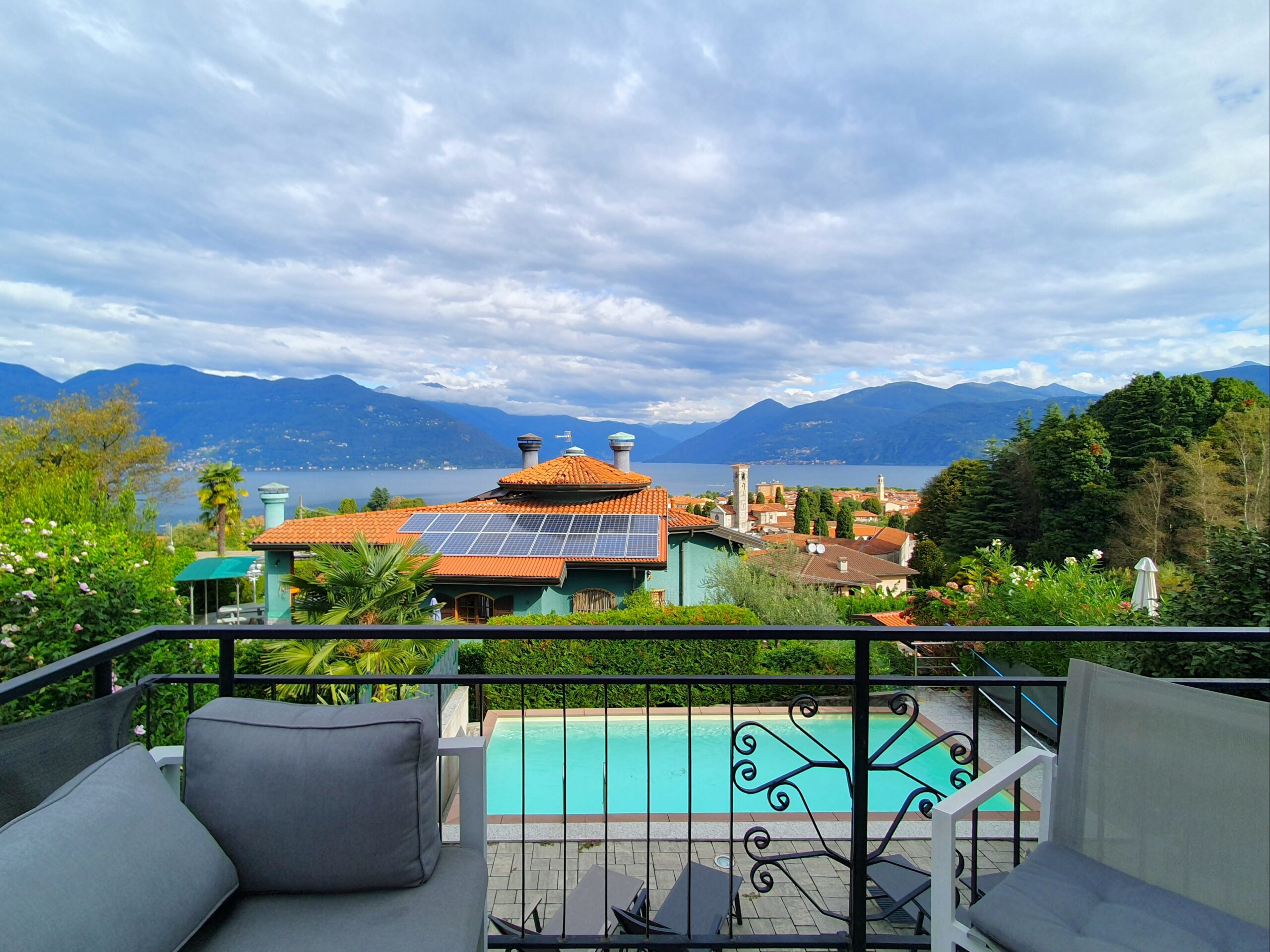In a quiet residential area of Germignaga, just a few meters from the beach, there is a beautiful semi-detached house that has been recently renovated and modernly furnished, featuring a swimming pool. With a surface area of about 90 m², it is spread over two floors. On each floor there is an independent apartment: a three-room apartment with a large terrace offering a splendid view of Lake Maggiore on the upper floor, and a two-room apartment on the lower floor, also with a terrace and lounge area by the pool.
