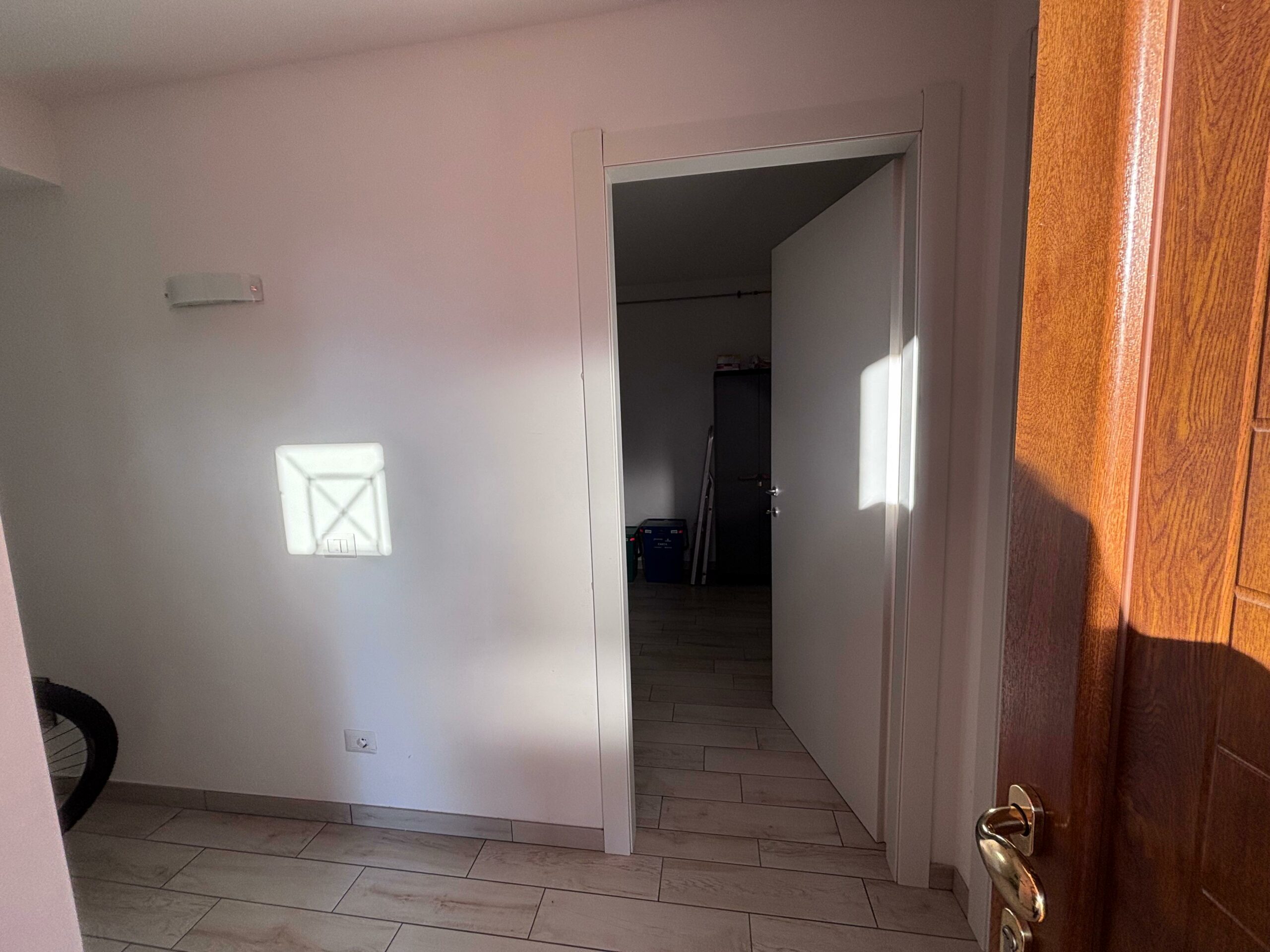 Outside, the property offers a private courtyard with one parking space suitable for small cars. Additionally, a large public parking area is located directly in front of the house, providing convenient space for multiple vehicles.