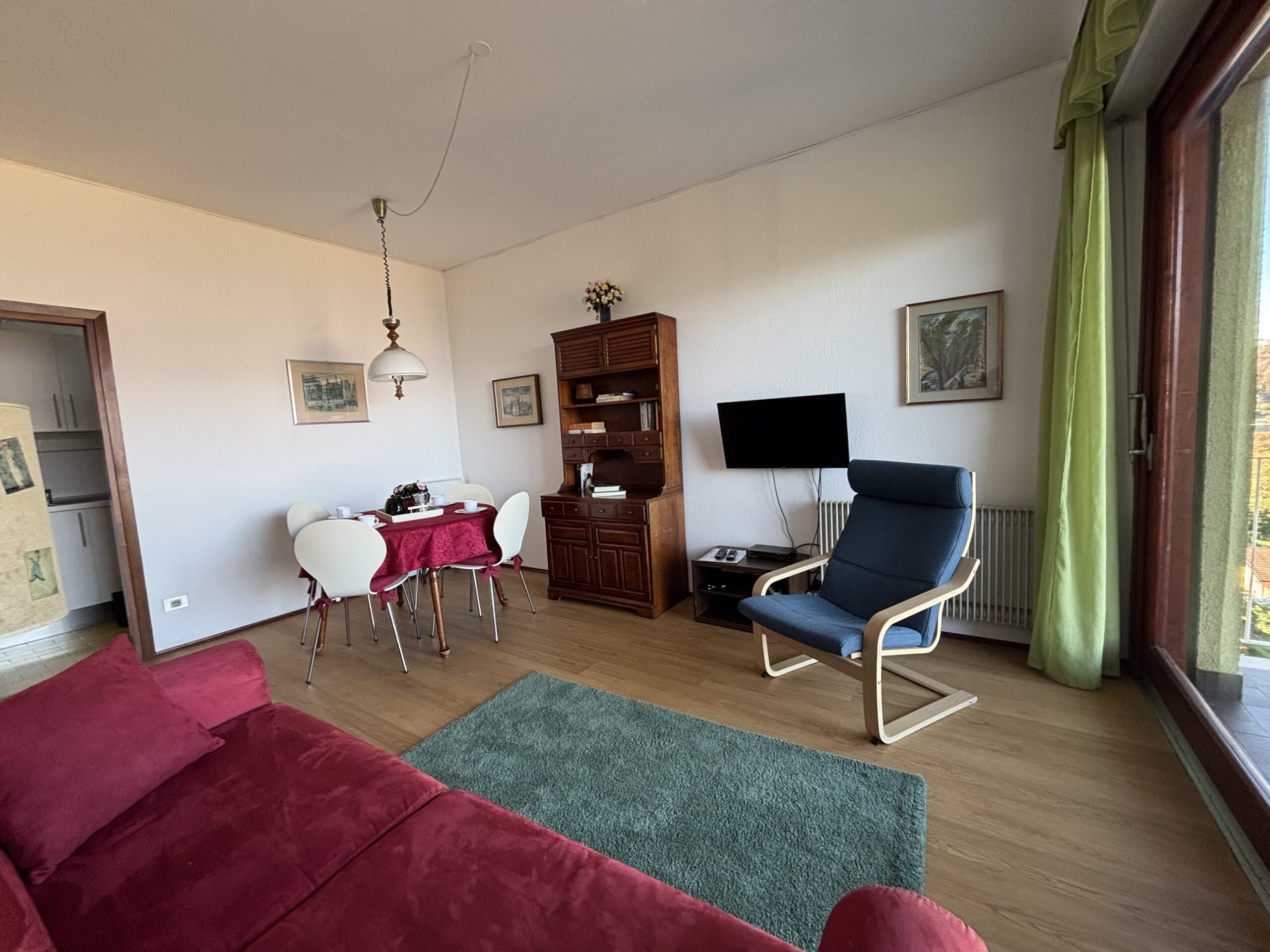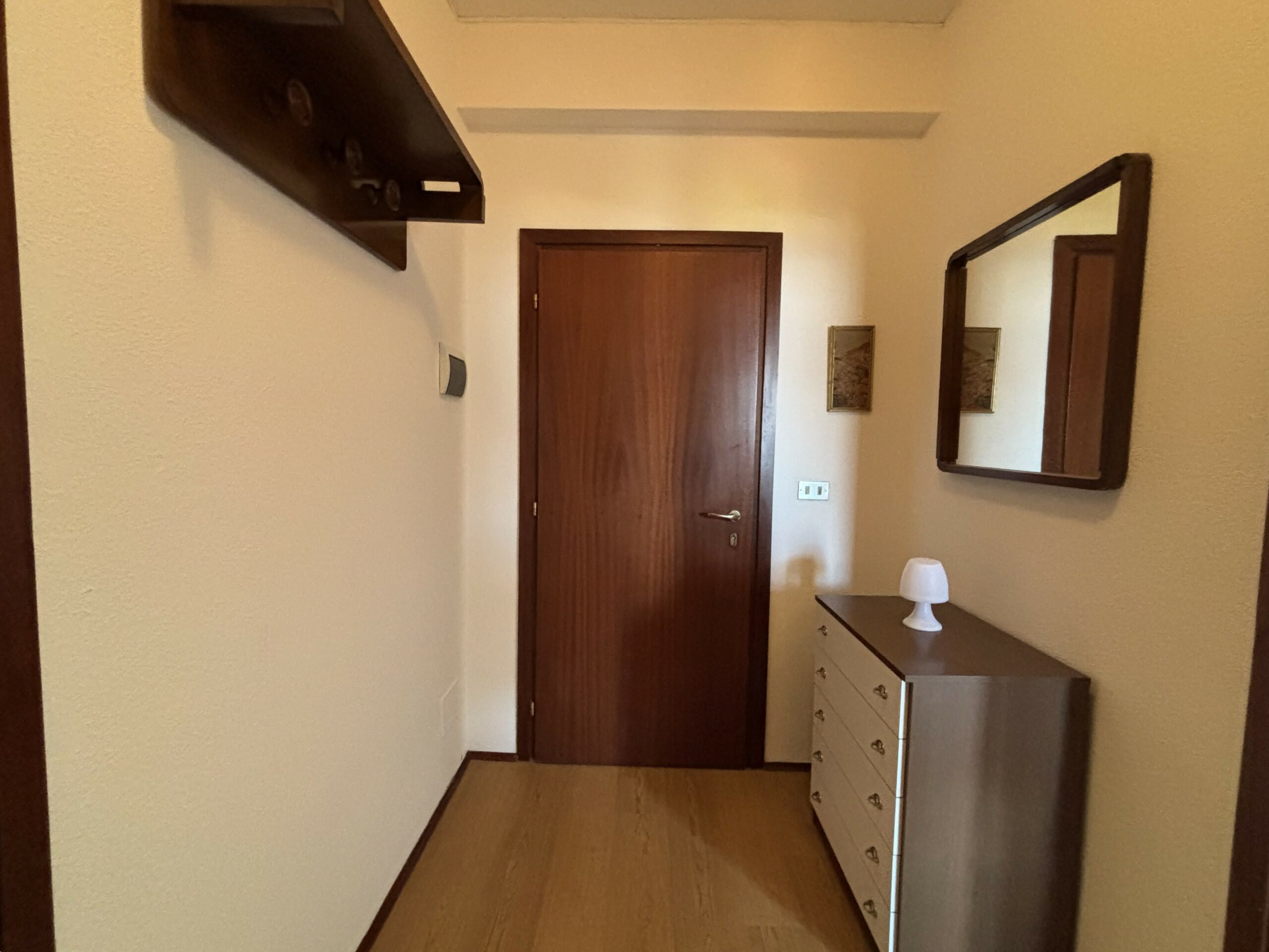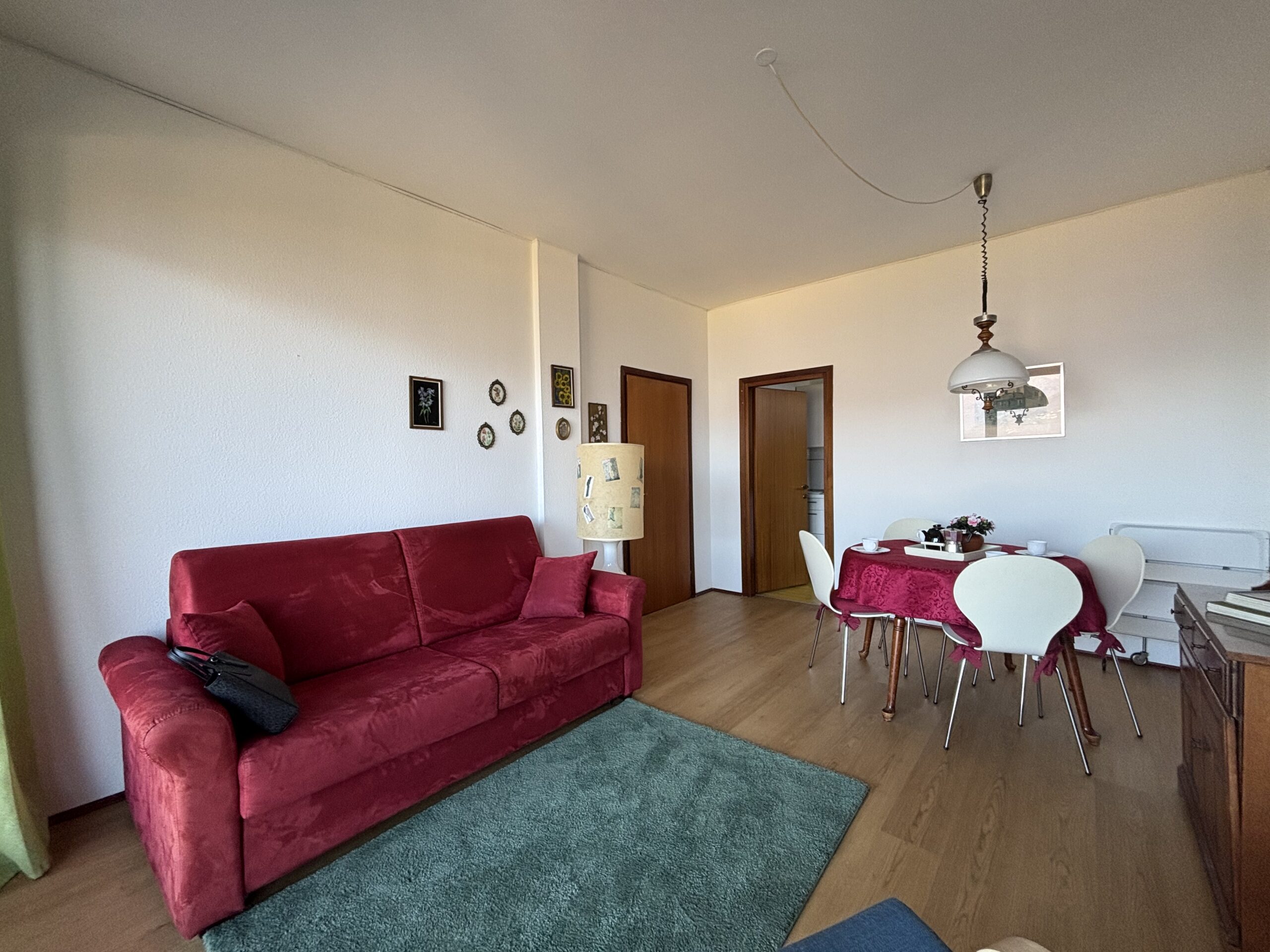On the fifth floor of the Euroville Residence, with a splendid panoramic view due to its elevated position, there is a two-room apartment of approx. 60 m², consisting of a small but bright living room with a double sofa bed and dining area, a functional separate kitchen, a bathroom with bathtub and 1 bedroom also equipped with a fold-down bed, for a total of 4 sleeping places.