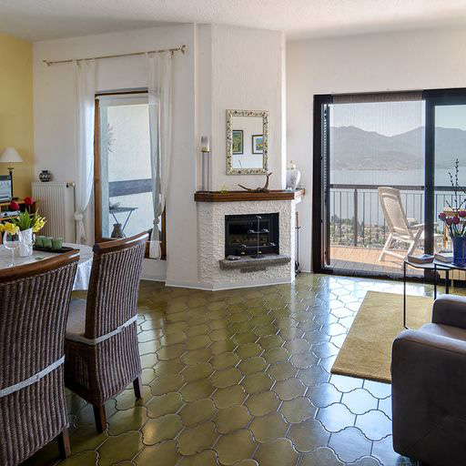 The apartment consists of a spacious and bright living room with an adjoining charming dining area and a wonderful fireplace that further enhances the ambience, a functional separate kitchen, a beautiful bathroom with built-in bathtub and 2 bedrooms with a total of 4 beds.