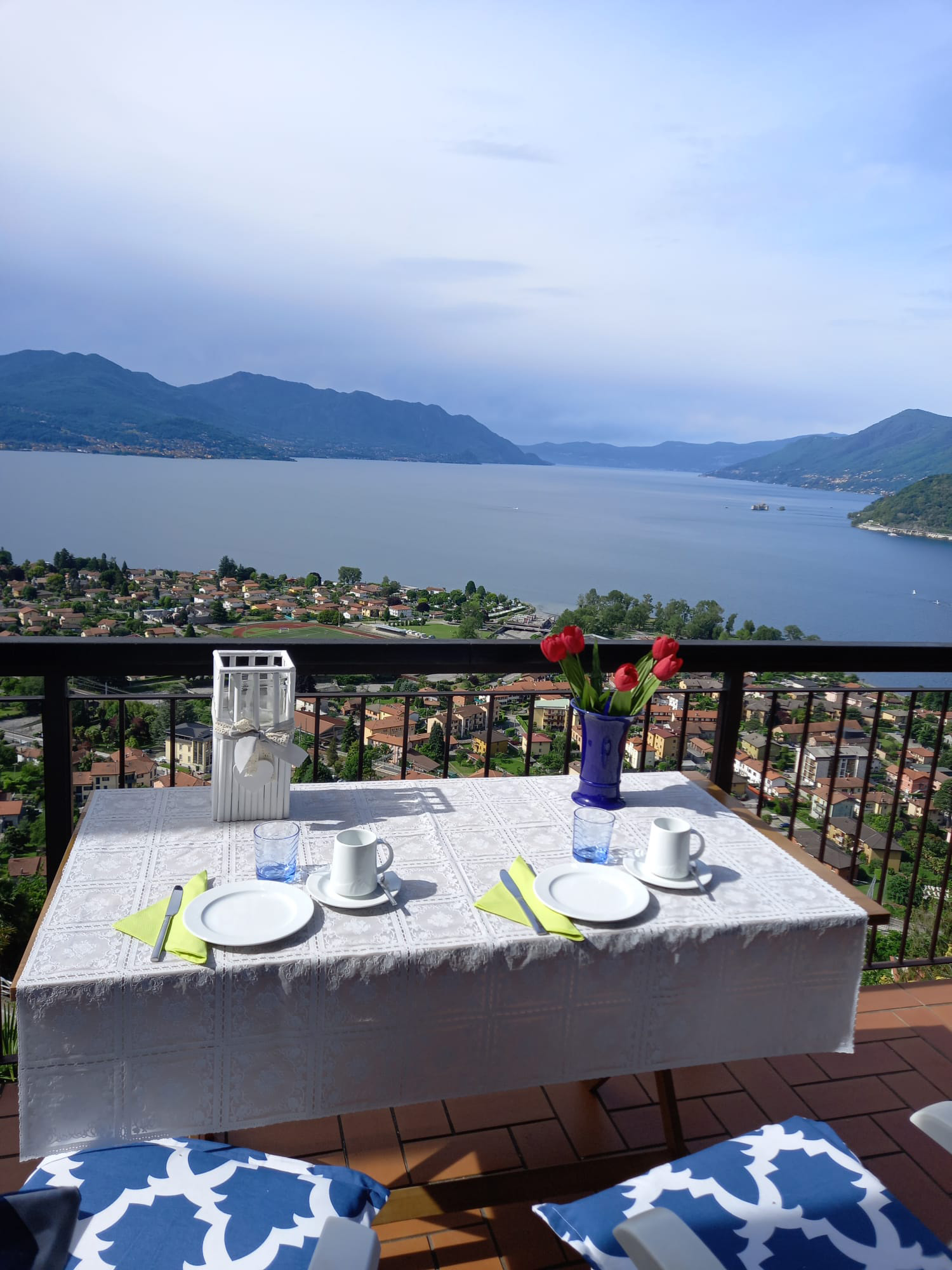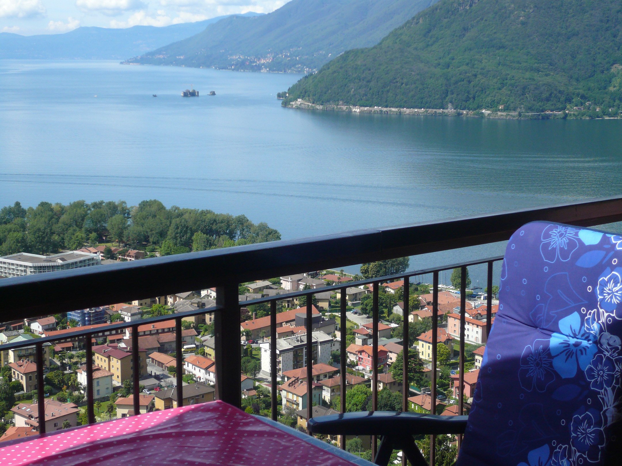 On the top floor of one of the buildings there is a beautiful three-room apartment, carefully furnished and equipped with two lovely balconies — one of which is very large and fitted with awnings — offering nothing less than a breathtaking view of Lake Maggiore and a surface area of approx. 70 m².