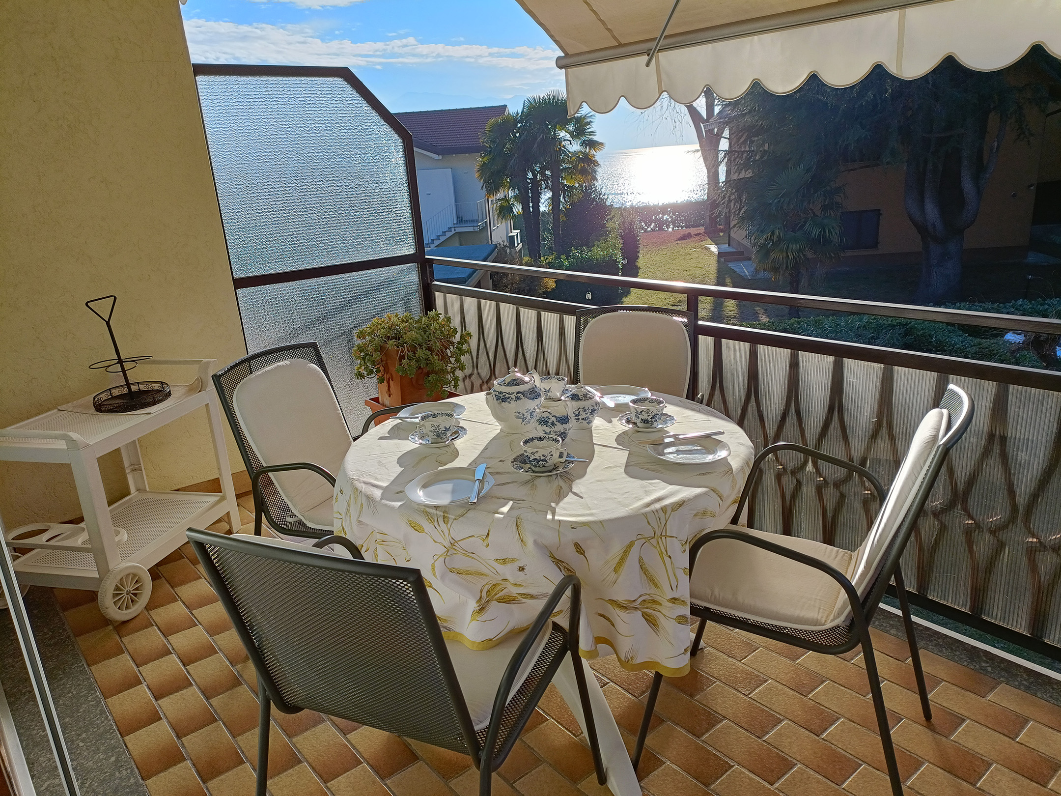 On the first floor of one of the houses — in a particularly privileged and bright position thanks to the constant sunlight, especially during the summer season — there is a lovely apartment featuring a large balcony with a stunning view, as it overlooks Lake Maggiore directly.