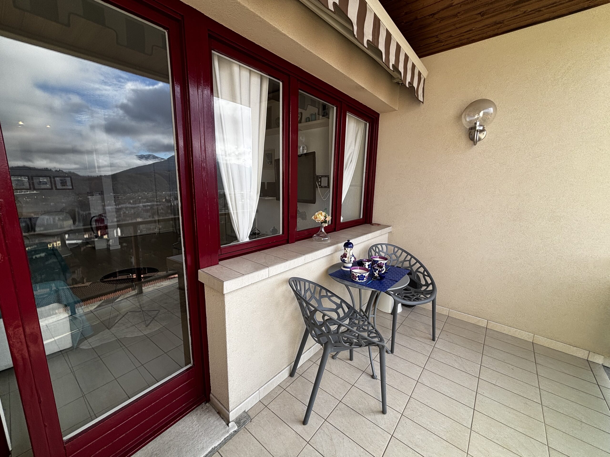 On the second floor of the charming residential complex there is a two-room apartment of approx. 60 m², well furnished and featuring a large balcony whose view over Lake Maggiore and Luino makes it very picturesque. The apartment consists of a small but modern living room with a pleasant dining area and a functional kitchenette, a very bright bathroom and 1 bedroom with a total of 2 beds.