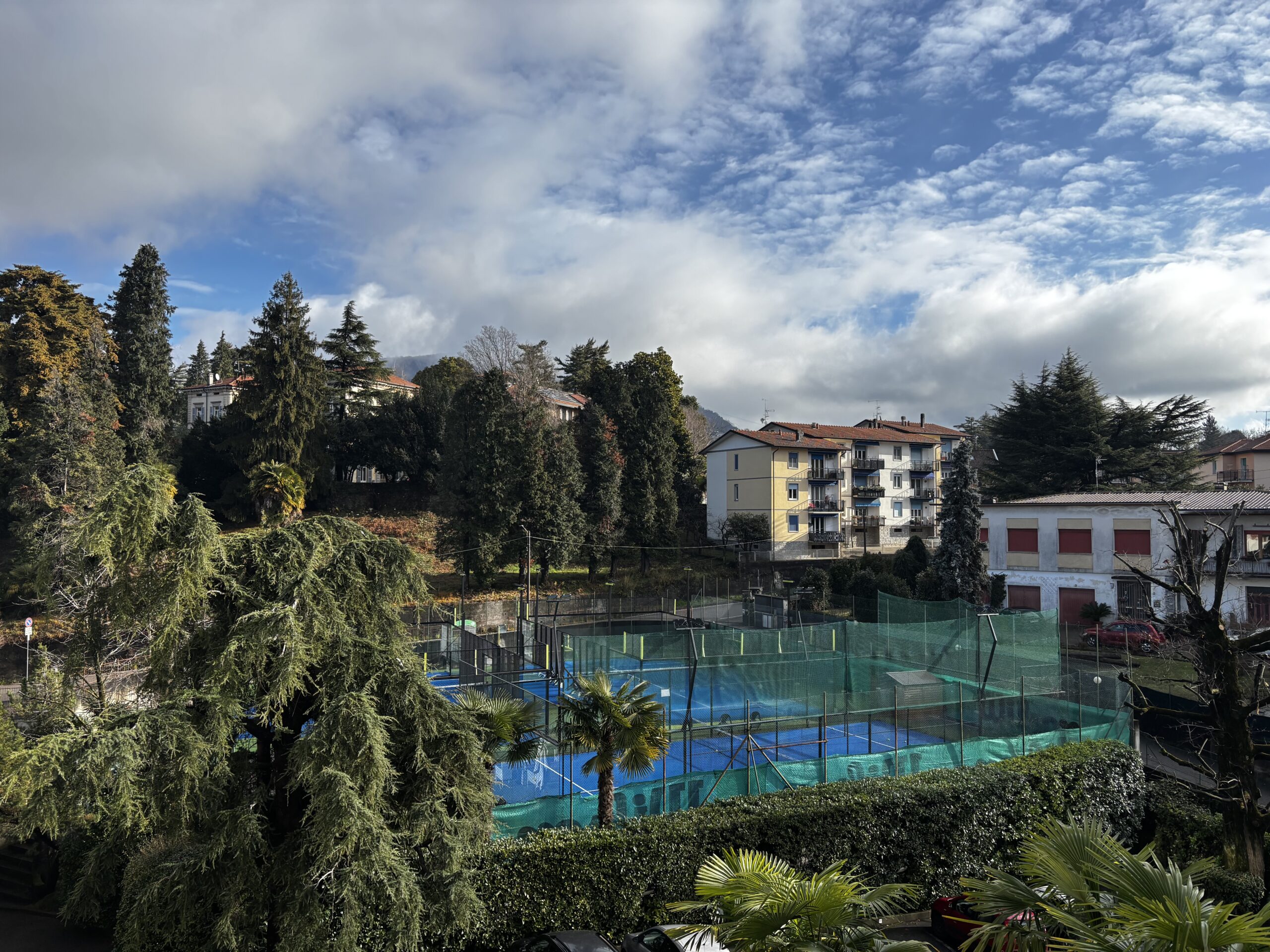 High above Luino, nestled in the lush greenery of a large park surrounded by centuries-old trees and featuring two beautiful swimming pools bordered by a small relaxation garden, there is a complex of terraced houses adjacent to a large multi-storey residential building, Villa Castiglioni, not far from the town centre and its attractions and easily reachable on foot. The complex also offers a laundry room with coin-operated washing machines and dryers for the exclusive use of residents; tokens can be purchased from the caretaker.