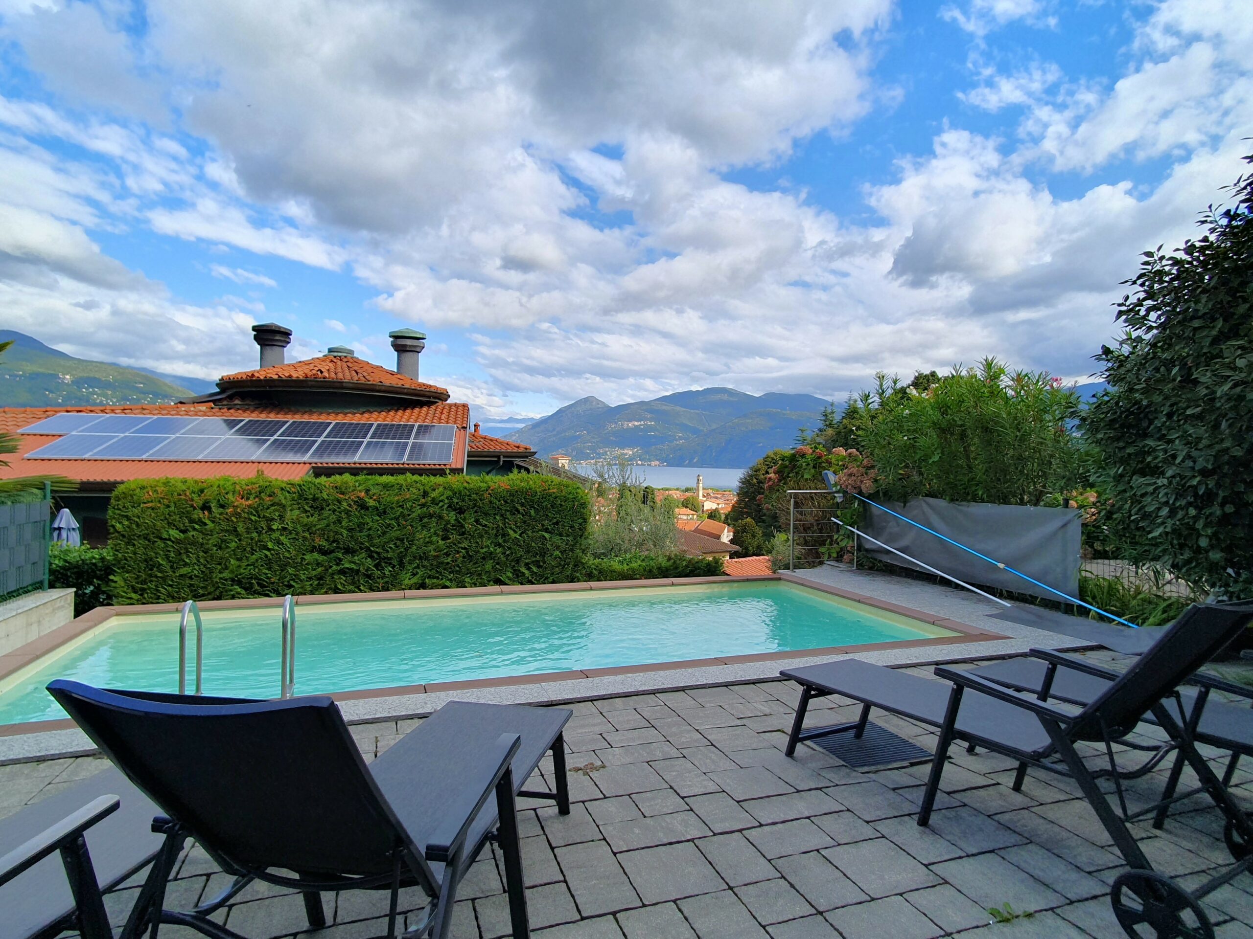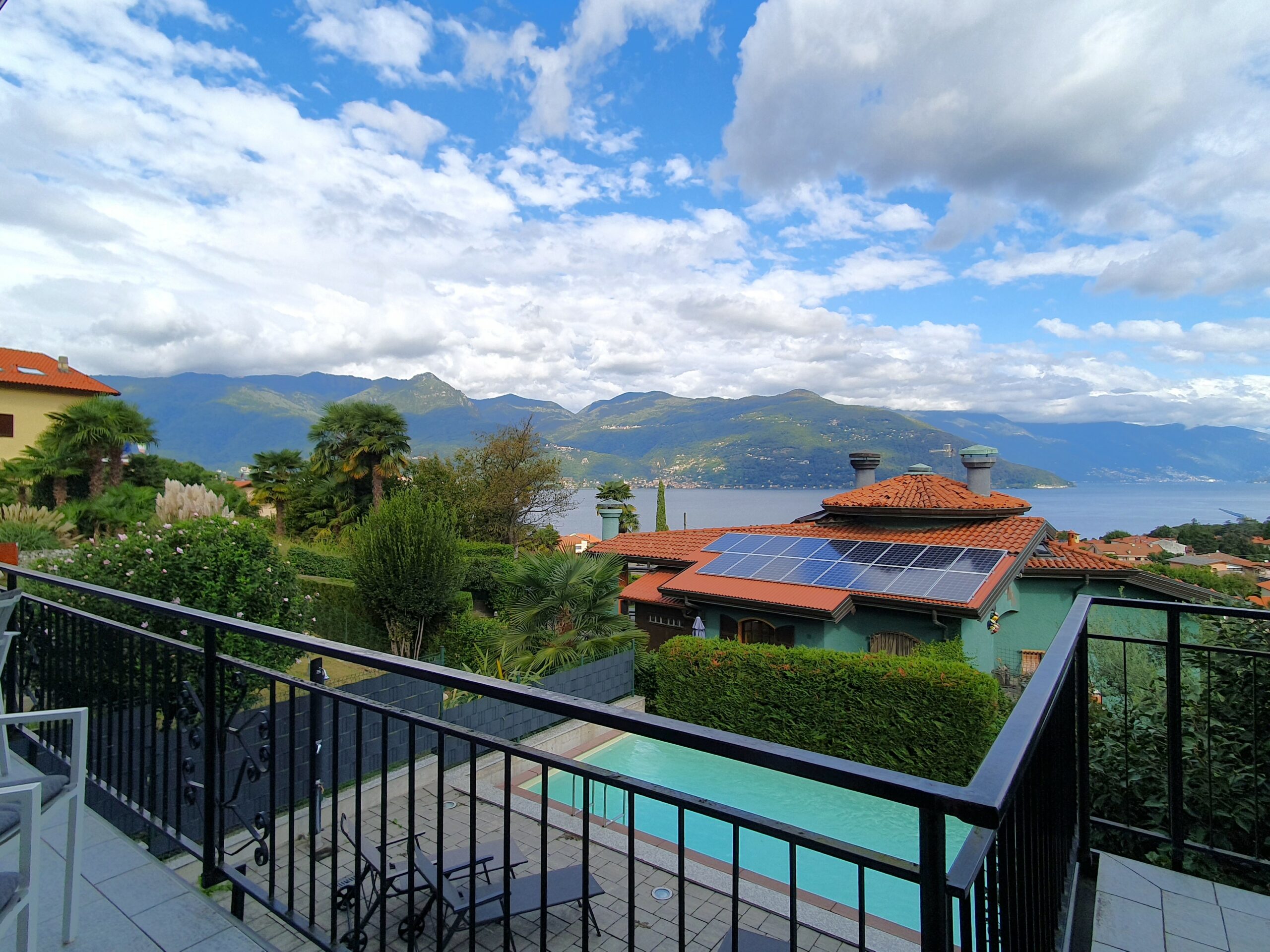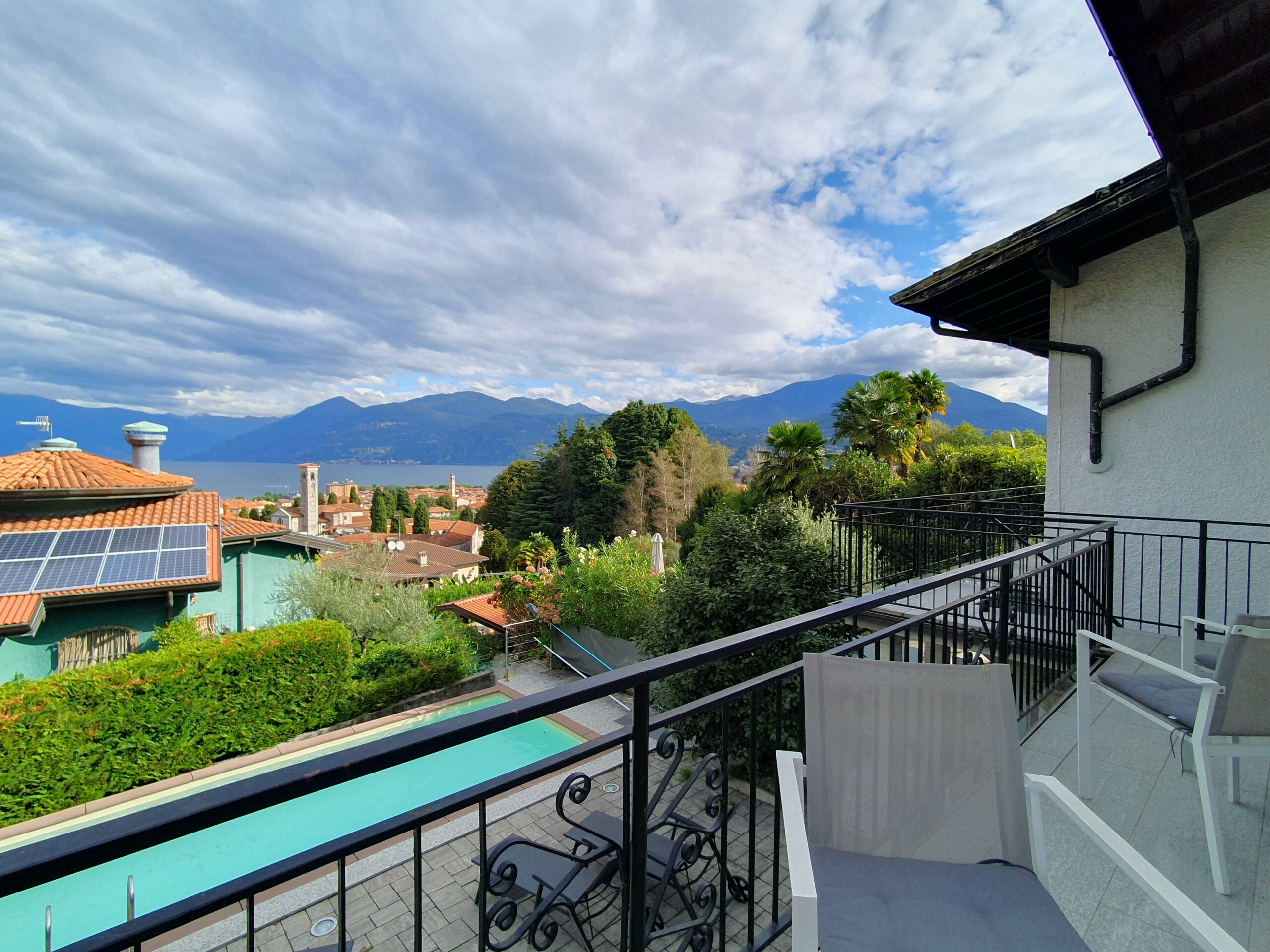 In una tranquilla zona residenziale di Germignaga, a pochi metri dalla spiaggia, si trova una bella villetta bifamiliare recentemente ristrutturata e arredata in stile moderno, dotata di piscina, che si estende su una superficie di circa 90 metri quadrati su 2 piani. Su entrambi i piani si trova un appartamento indipendente, un trilocale con ampia terrazza con splendida vista sul Lago Maggiore al piano superiore e un bilocale, anch’esso con terrazza con zona lounge a bordo piscina, al piano inferiore. Entrambi gli appartamenti sono composti da un ampio soggiorno con zona pranzo e angolo cottura, uno più semplice e l’altro molto più attrezzato, servizi di servizio, un bagno semplice e 1 camera da letto, a carico del piano superiore che è dotato di una camera da letto aggiuntiva, per un totale di 6 posti letto.