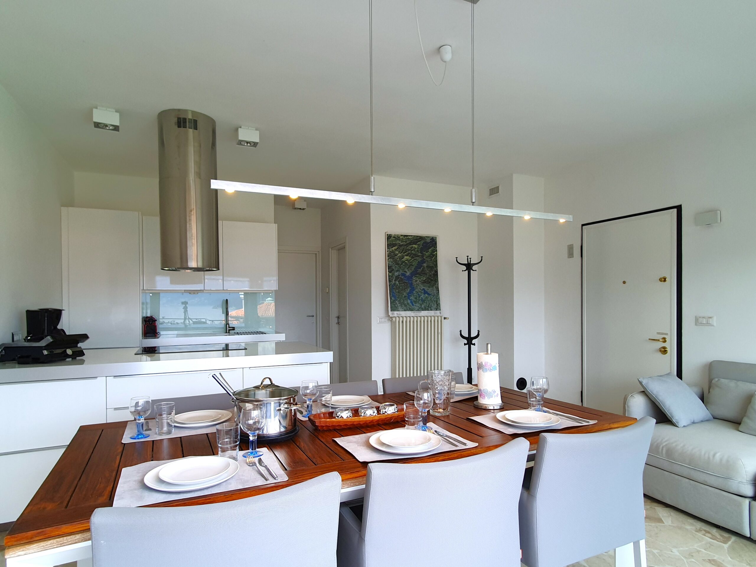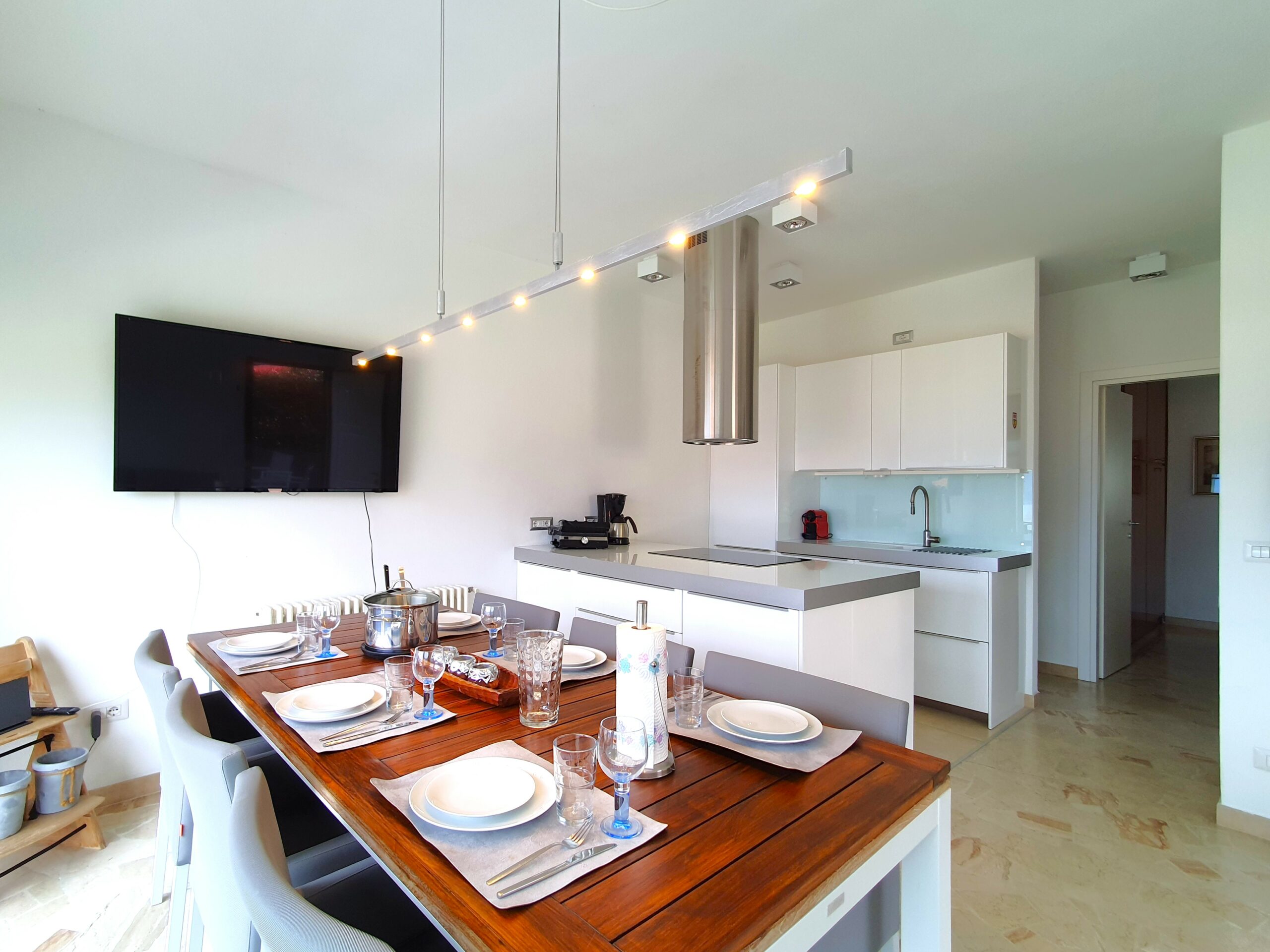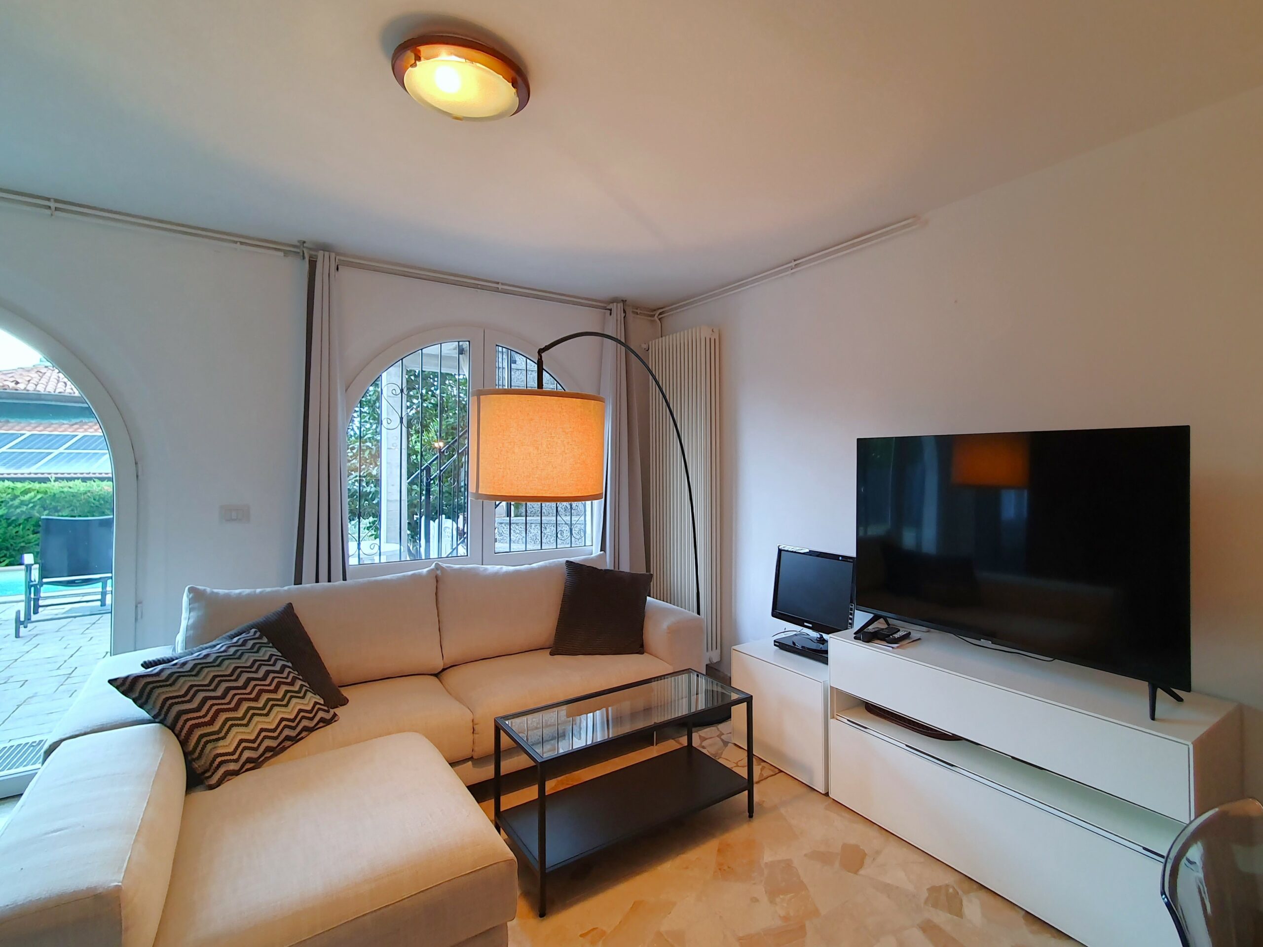In una tranquilla zona residenziale di Germignaga, a pochi metri dalla spiaggia, si trova una bella villetta bifamiliare recentemente ristrutturata e arredata in stile moderno, dotata di piscina, che si estende su una superficie di circa 90 metri quadrati su 2 piani. Su entrambi i piani si trova un appartamento indipendente, un trilocale con ampia terrazza con splendida vista sul Lago Maggiore al piano superiore e un bilocale, anch’esso con terrazza con zona lounge a bordo piscina, al piano inferiore. Entrambi gli appartamenti sono composti da un ampio soggiorno con zona pranzo e angolo cottura, uno più semplice e l’altro molto più attrezzato, servizi di servizio, un bagno semplice e 1 camera da letto, a carico del piano superiore che è dotato di una camera da letto aggiuntiva, per un totale di 6 posti letto.