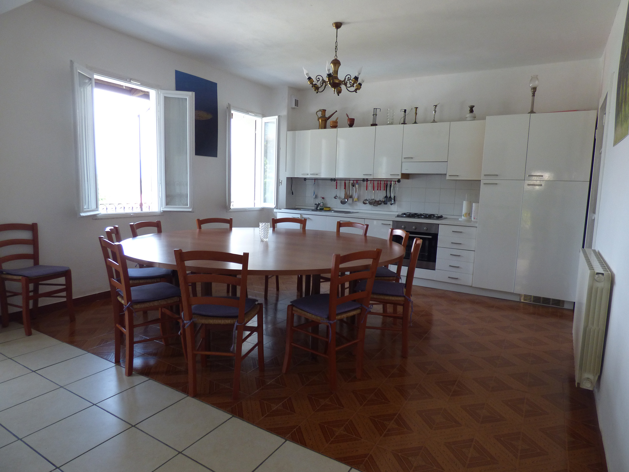 La casa, disposta su due piani, dispone di 7 camere da letto per un totale di 14 posti letto, 5 bagni con doccia e sanitari moderni e funzionanti, una grande cucina con tavolo rotondo da 14 posti, un soggiorno con diversi divani in grado di accogliere tutti gli ospiti e 2 balconi, di cui uno coperto, accessibile dal retro della casa.