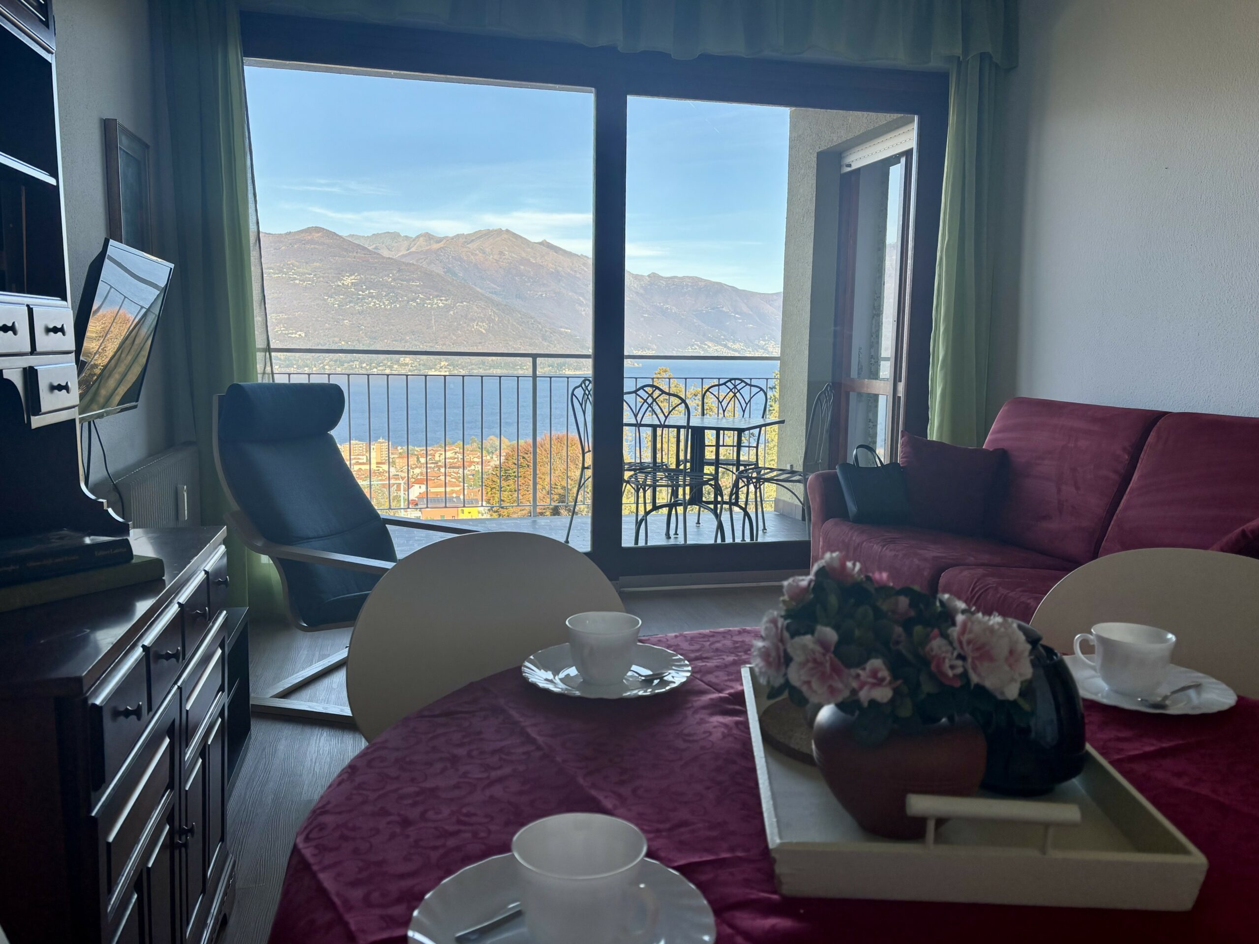 All’esterno si affacciano sia il già citato giardino panoramico che un ampio e grazioso balcone.
