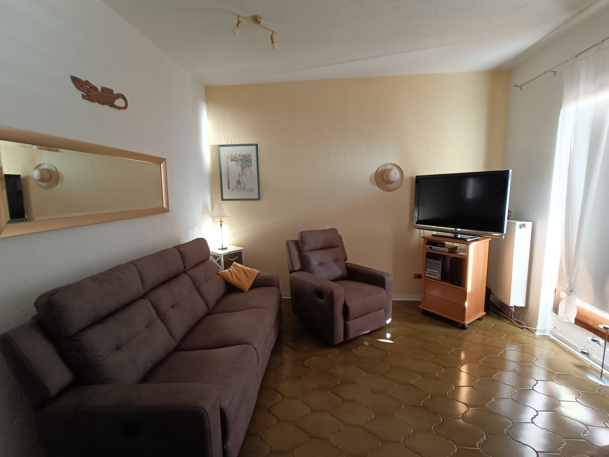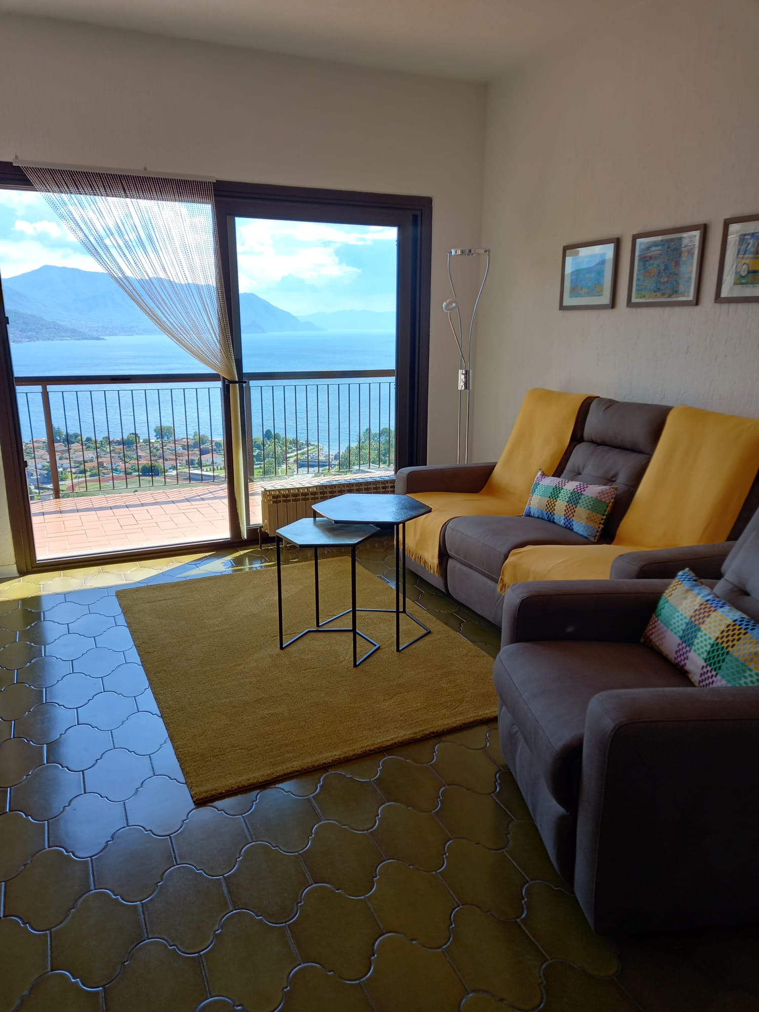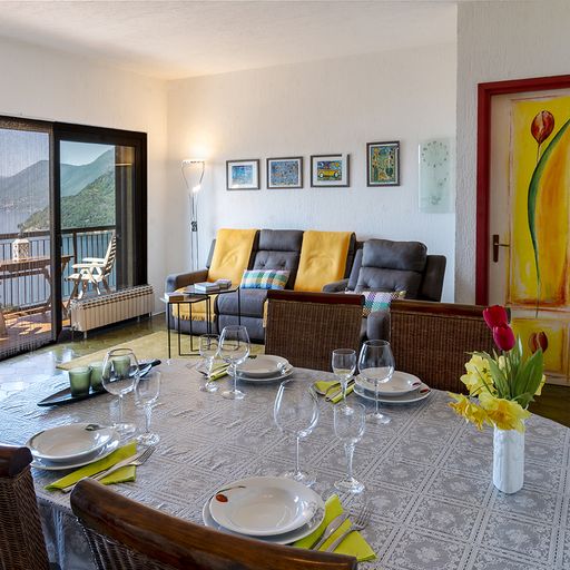 All’ultimo piano di uno degli edifici si trova un meraviglioso trilocale, arredato con cura e dotato di due bei balconi — uno dei quali molto grande e provvisto di tende da sole — con una vista davvero straordinaria sul Lago Maggiore, per una superficie di circa 70 m². L’appartamento è composto da un ampio e luminoso soggiorno con adiacente e graziosa zona pranzo e da un meraviglioso camino che rende l’ambiente ancora più accogliente, da una cucina separata funzionale, da un elegante bagno con vasca incassata e da 2 camere da letto per un totale di 4 posti letto.