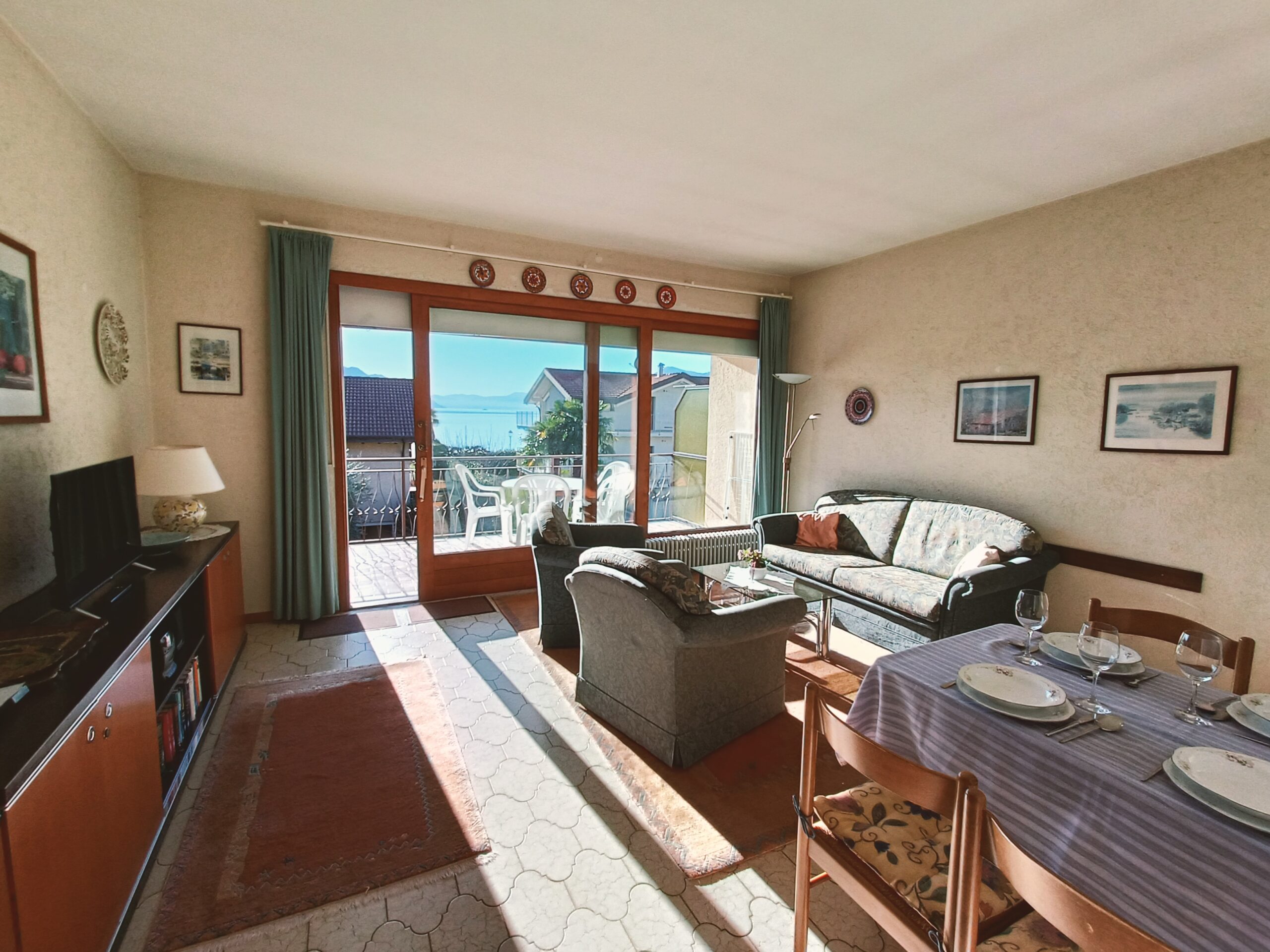 Al primo piano di un complesso residenziale composto da due villette quadrifamiliari, situato vicino alla spiaggia di Maccagno, si trova un incantevole bilocale di circa 60 m², dotato di un ampio balcone con vista splendida, poiché affacciato direttamente sul Lago Maggiore, dove non sono ammessi animali domestici. L’appartamento è composto da un luminoso soggiorno adiacente a una graziosa zona pranzo e dotato di divano letto doppio, da una cucina molto funzionale, da un bagno con vasca incassata e da 1 camera da letto per un totale di 4 posti letto.