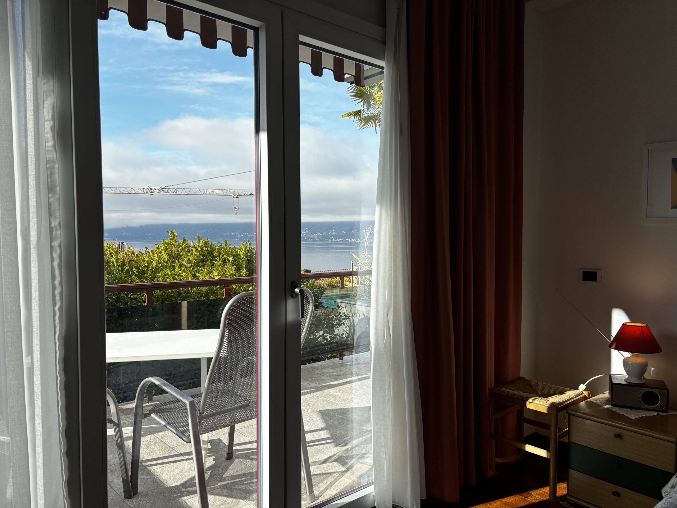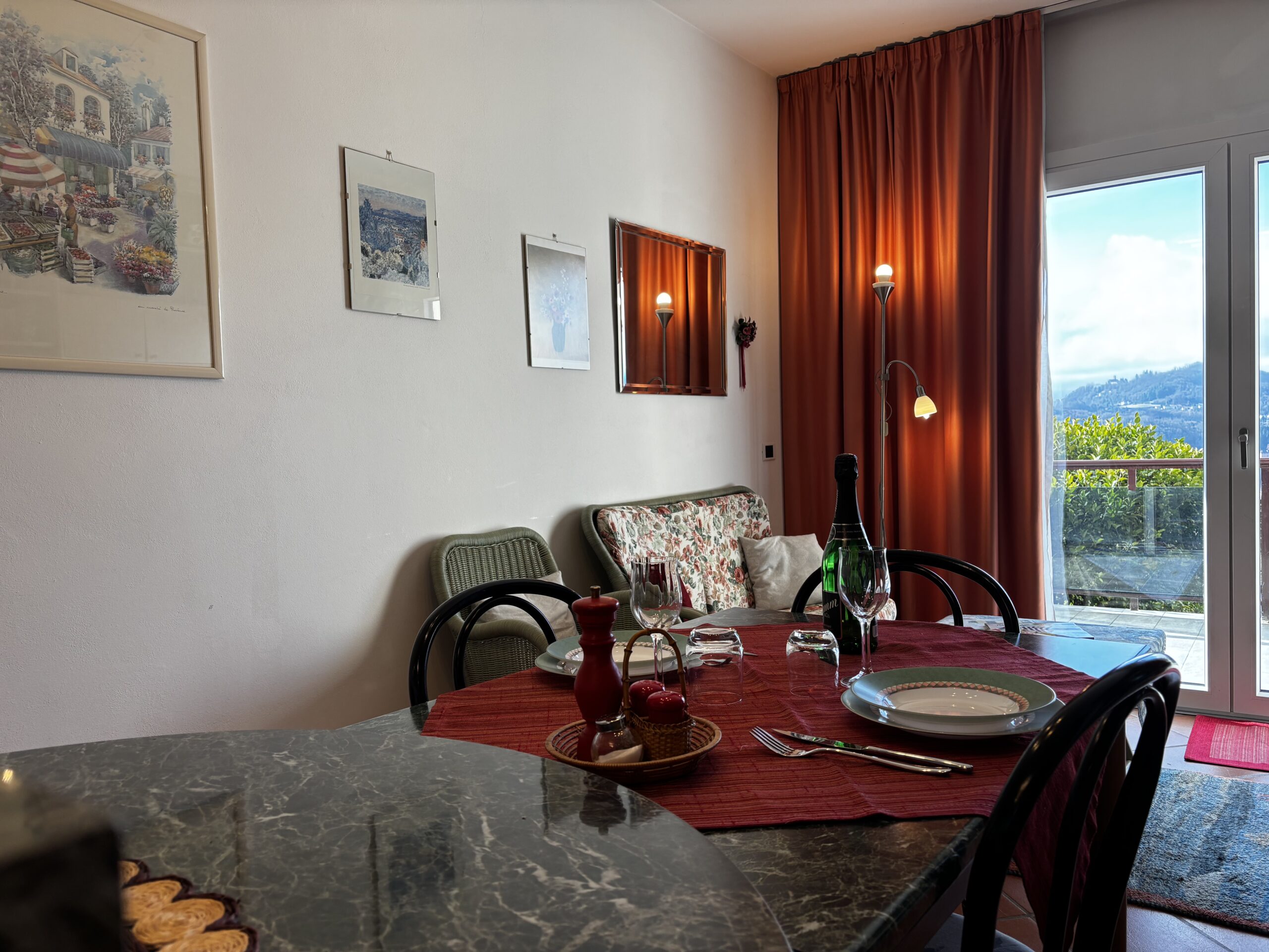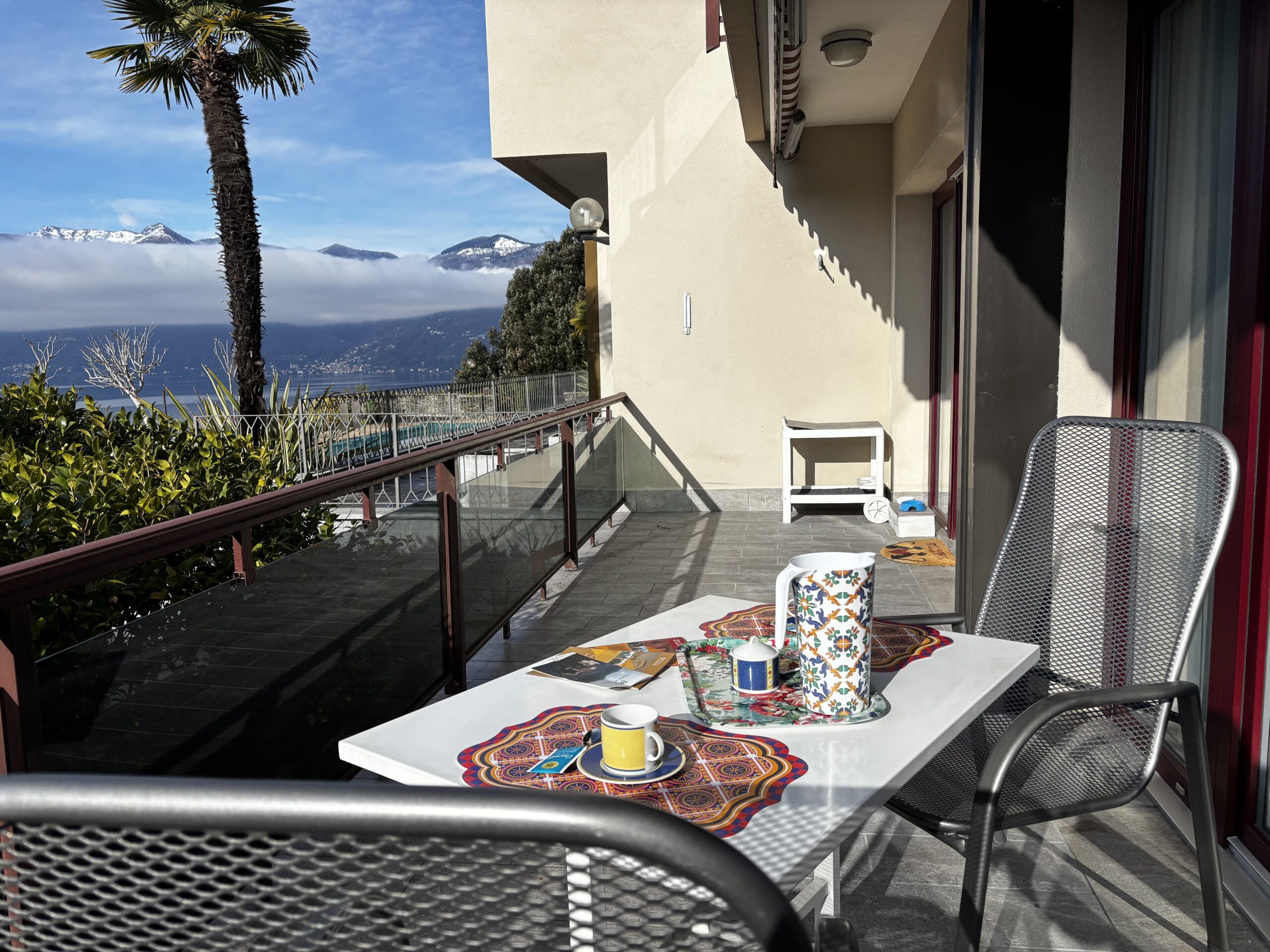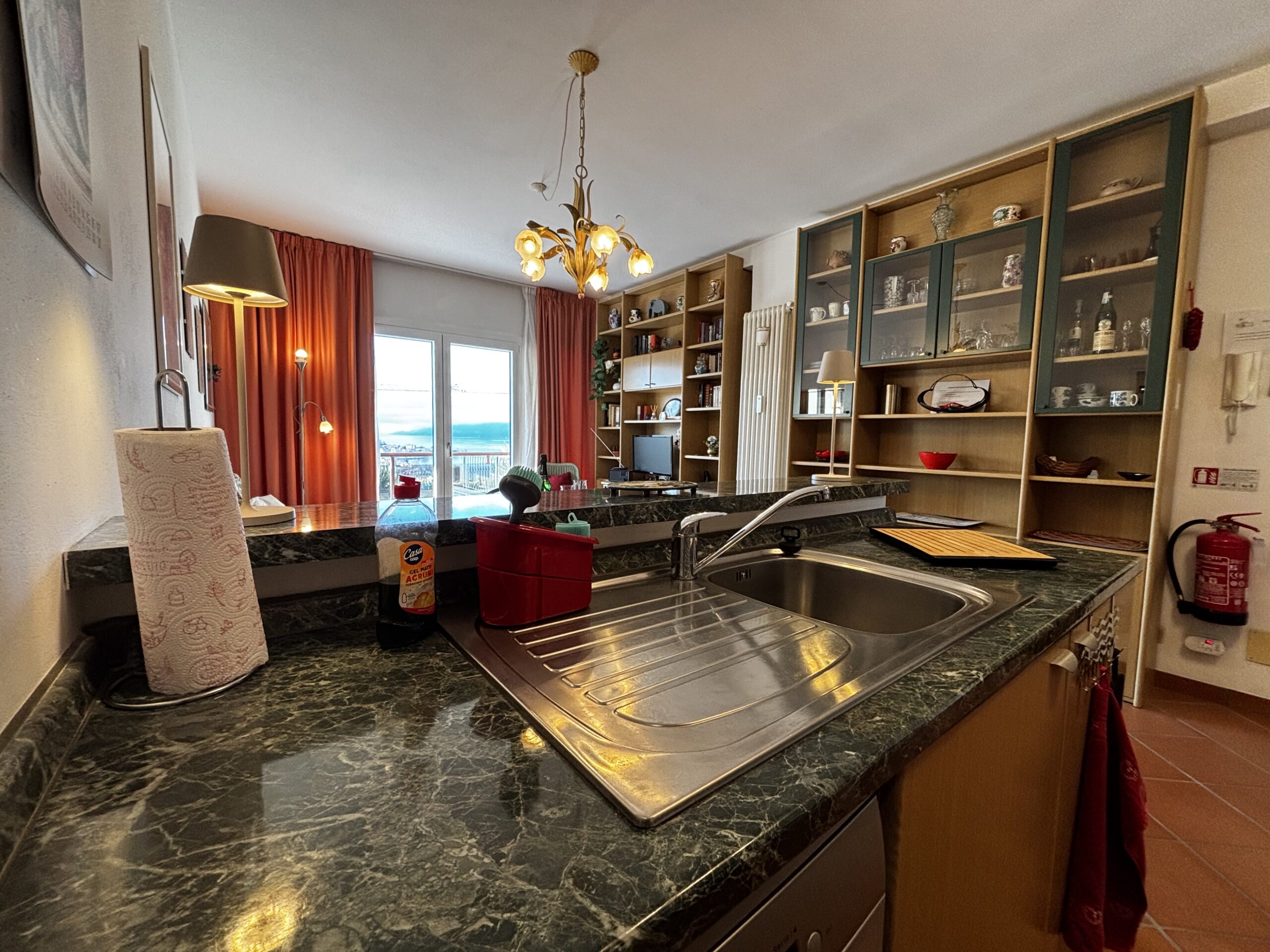 Al primo piano del grazioso complesso residenziale si trova un bilocale di circa 60 m², ben arredato e dotato di un ampio balcone, il cui affaccio sul Lago Maggiore e su Luino lo rende particolarmente suggestivo. L’appartamento è composto da un piccolo ma luminoso soggiorno, arredato con una piacevole zona pranzo e un angolo cottura funzionale, un bagno molto luminoso e 1 camera da letto per un totale di 2 posti letto.
