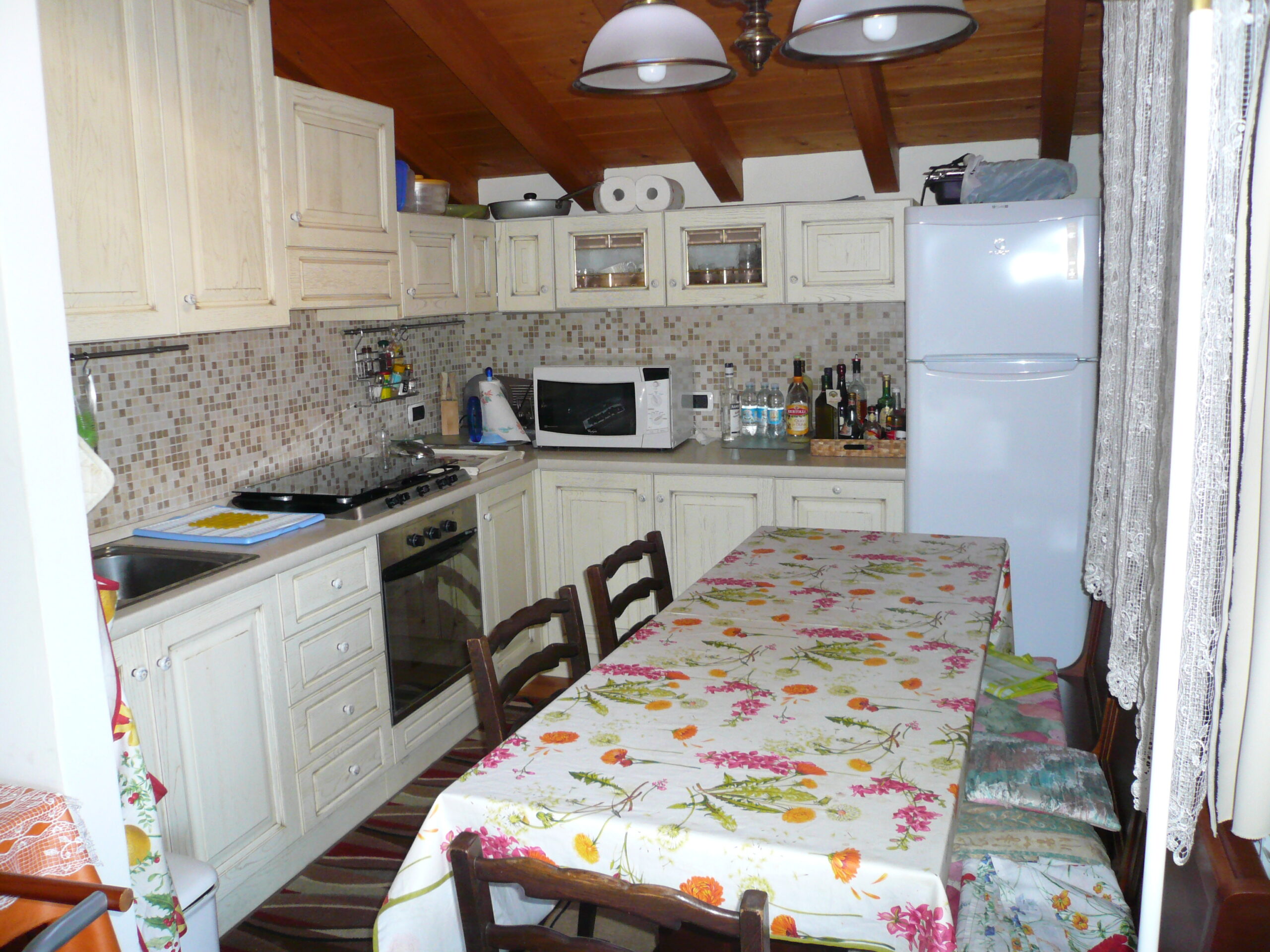 con cucina a vista adiacente, bagno semplice e 2 camere da letto, per un totale di 4 posti letto. L’area esterna comprende un ampio balcone con vista panoramica. La casa dispone inoltre di connessione Wi-Fi, TV, lavastoviglie