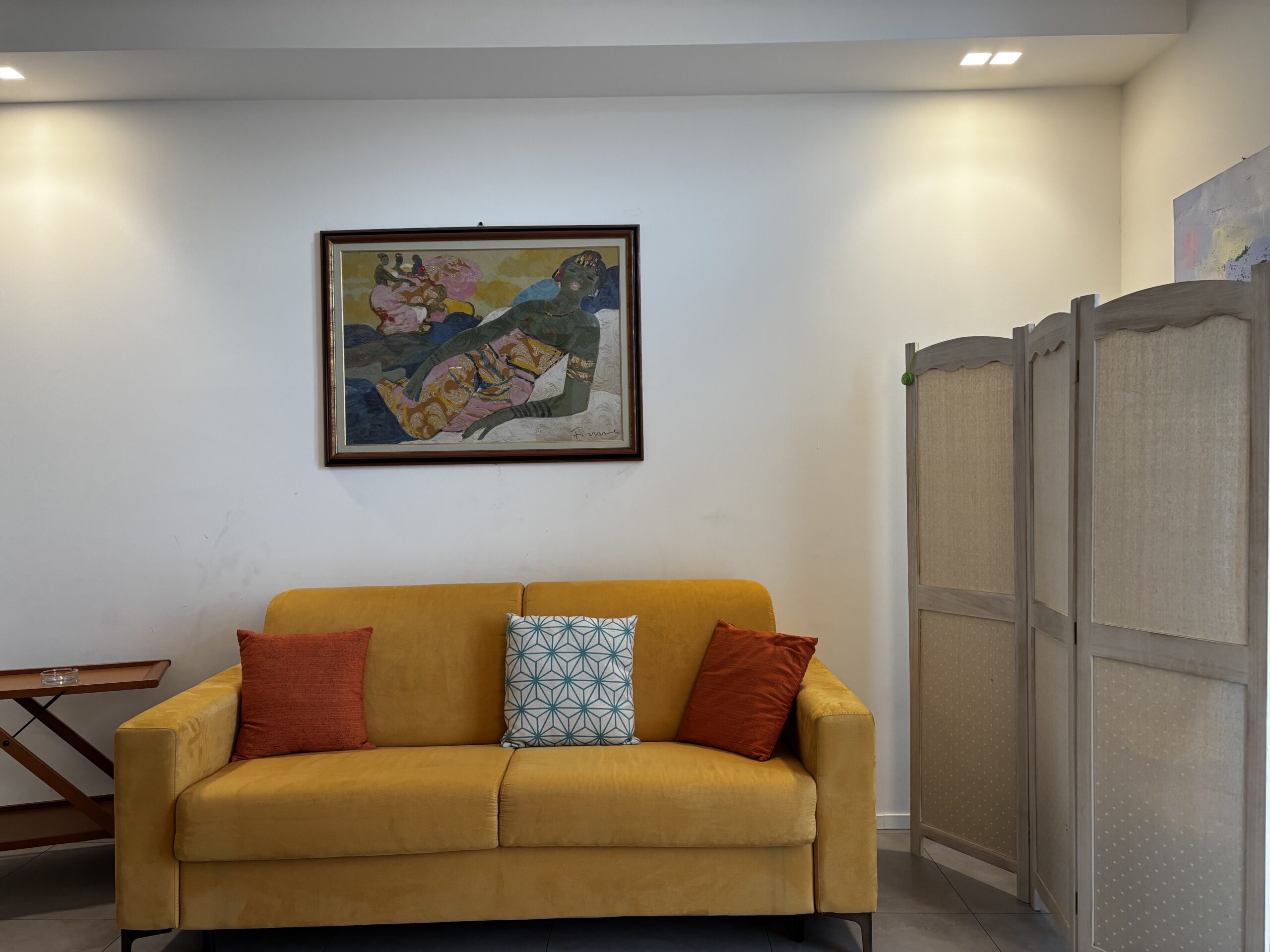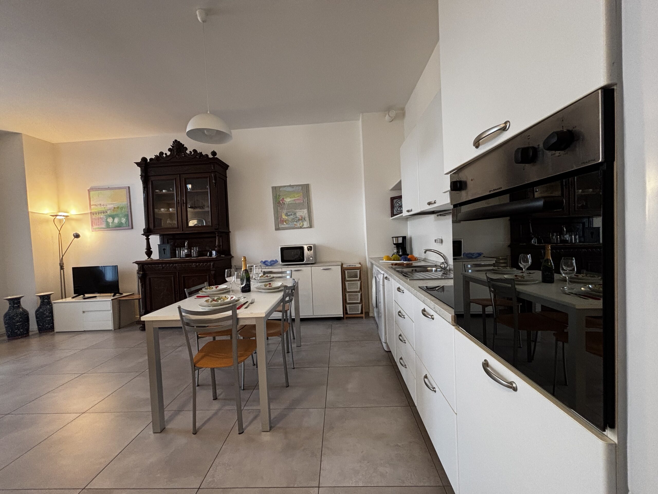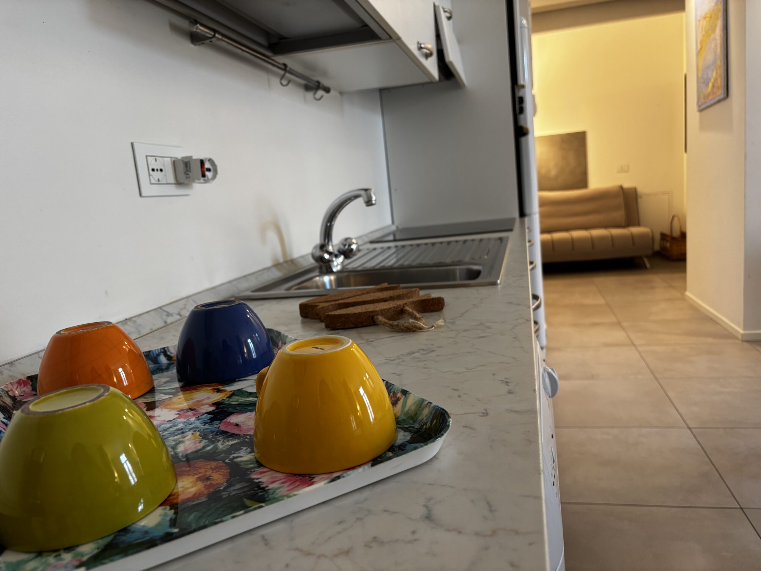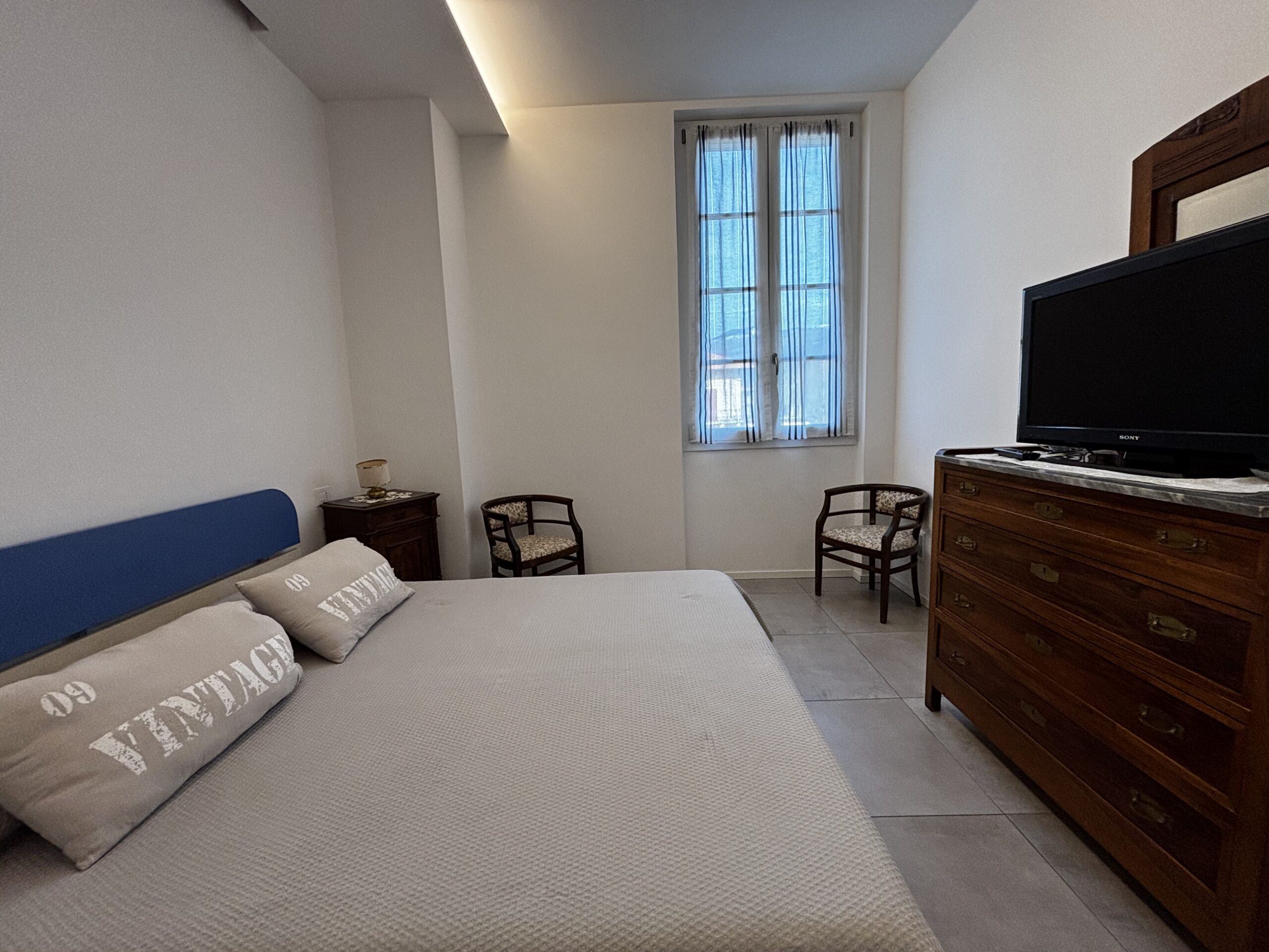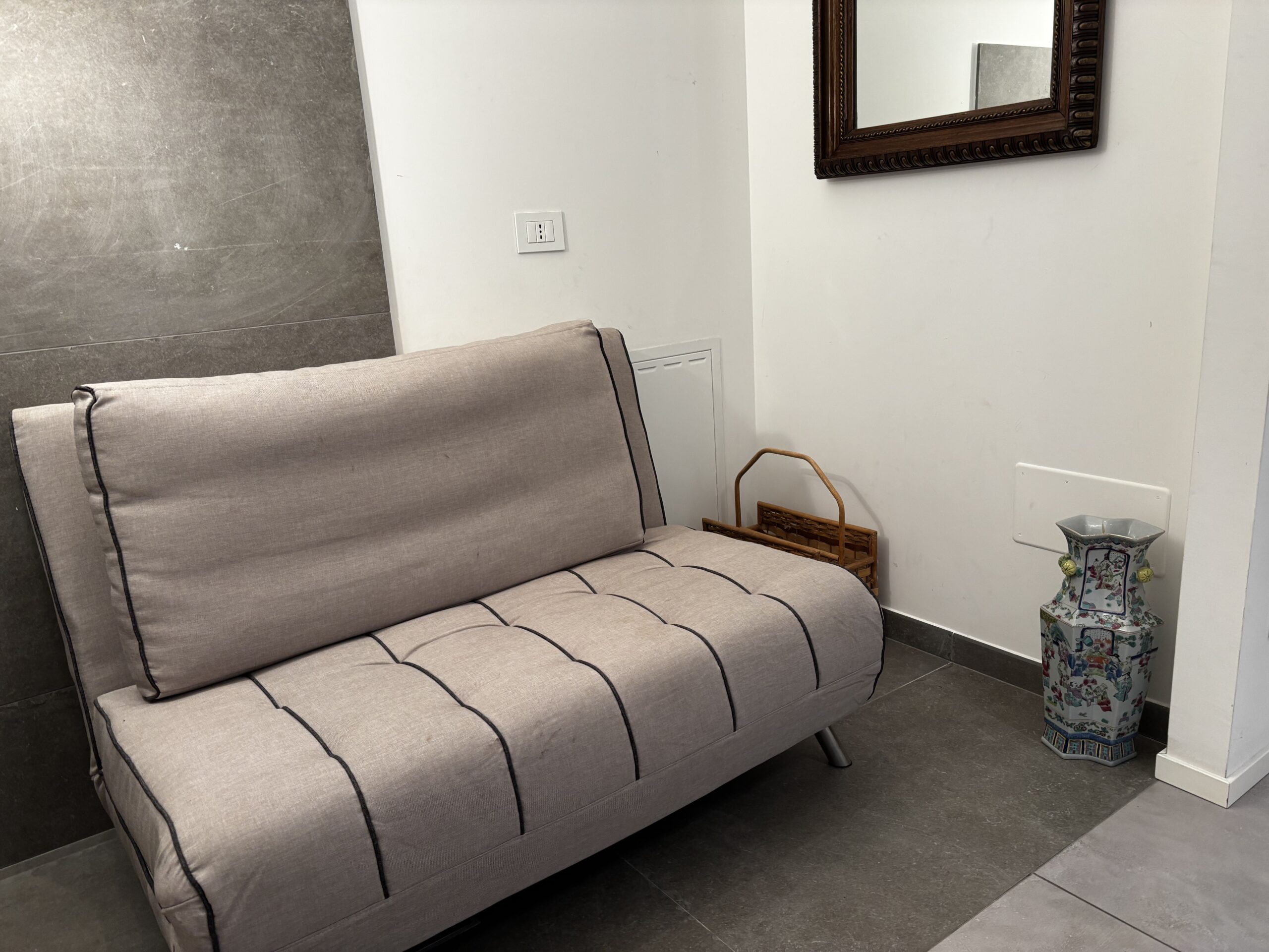 Im zweiten Stock von Casa Al Parco befindet sich eine charmante, geschmackvoll eingerichtete Zweizimmerwohnung mit einer Fläche von 60 m², bestehend aus einem großen Wohnzimmer mit einem Doppelschlafsofa und einer einfachen, aber gut ausgestatteten Küchenzeile, einem einfachen Badezimmer und einem Schlafzimmer mit Einbauschrank, also insgesamt 4 Betten. Der Außenbereich besteht aus einem kleinen Balkon mit Blick auf den großen öffentlichen Park „il Boschetto“, einem sehr kühler und schattiger Platz, der besonders für Familien mit Kindern geeignet ist.