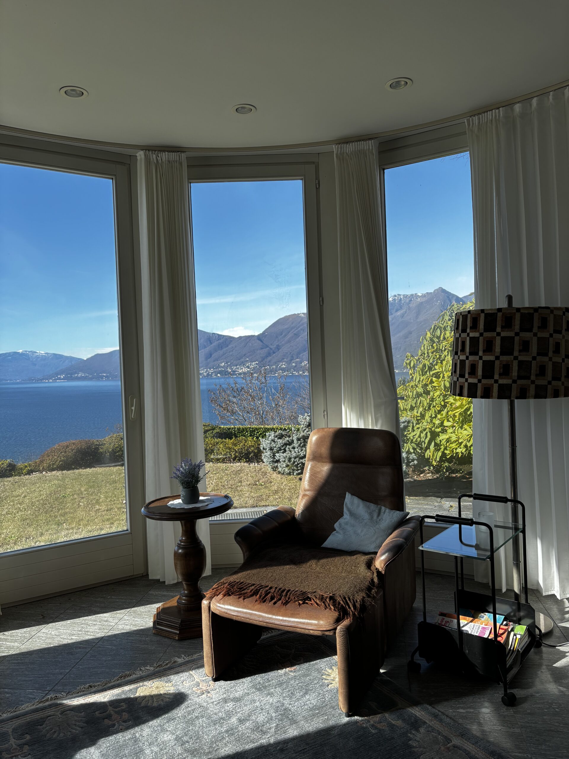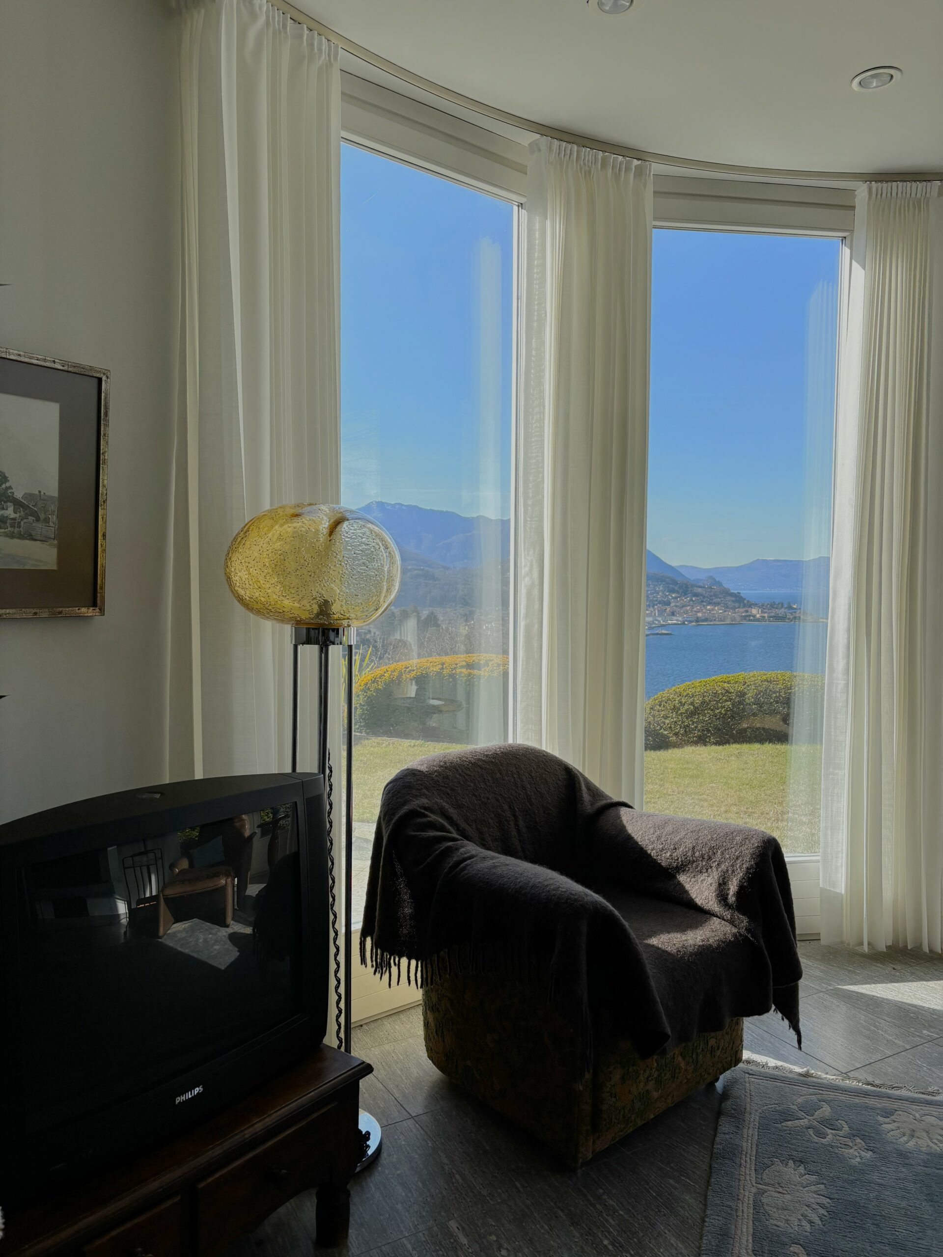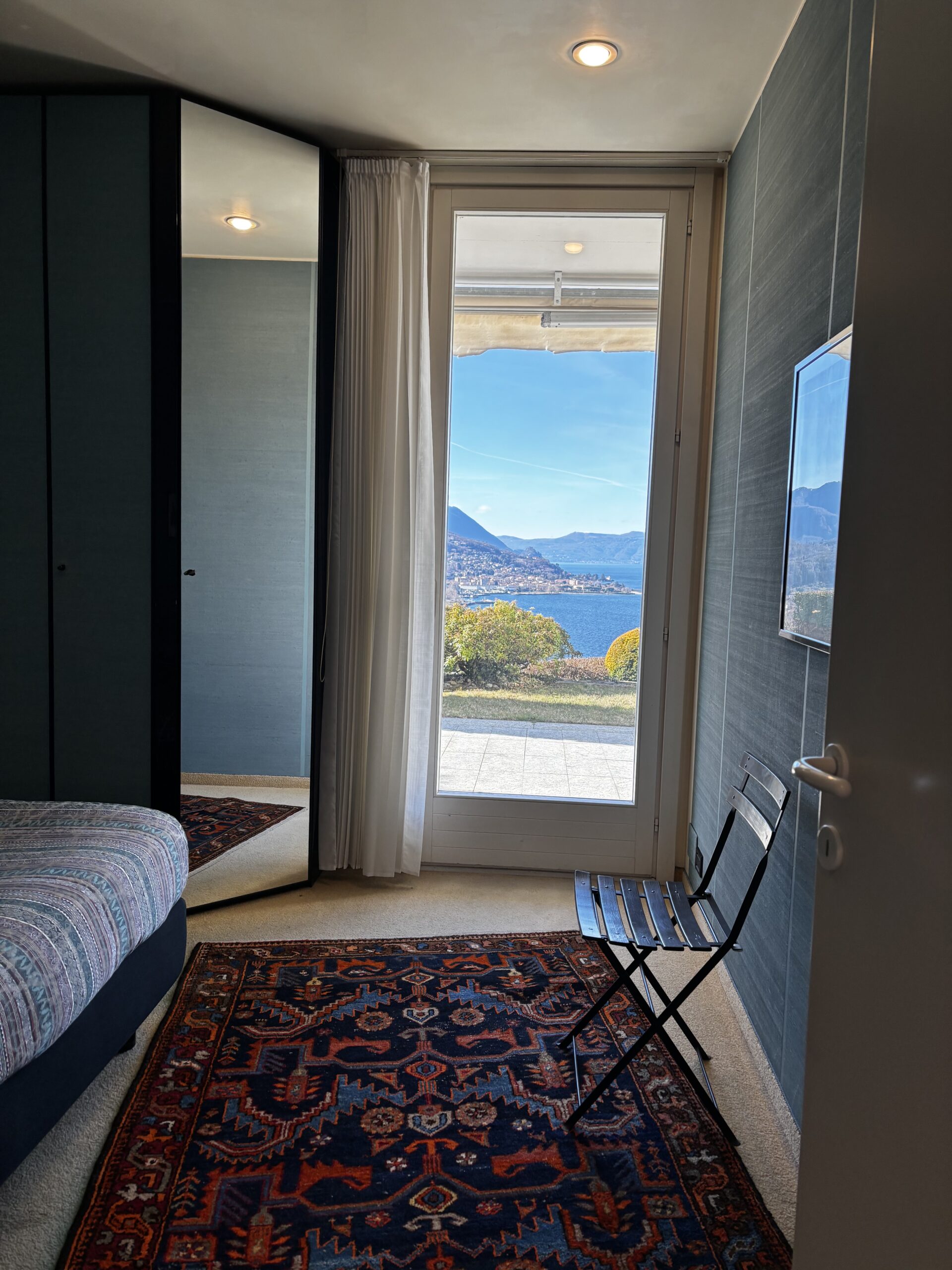 Die Wohnung mit einer Fläche von ca. 55 m² ist hervorragend und angenehm eingerichtet und ihre Besonderheit ist das majestätische halbrunde Panoramafenster, das einen wunderbaren Blick auf den Lago Maggiore bietet. Das Haus besteht aus einem großen und hellen Wohnzimmer mit einem kleinen, aber einladenden Essbereich, einer voll ausgestatteten und funktionalen offenen Küche, einem Badezimmer und einem geräumigen Schlafzimmer mit insgesamt zwei Betten.