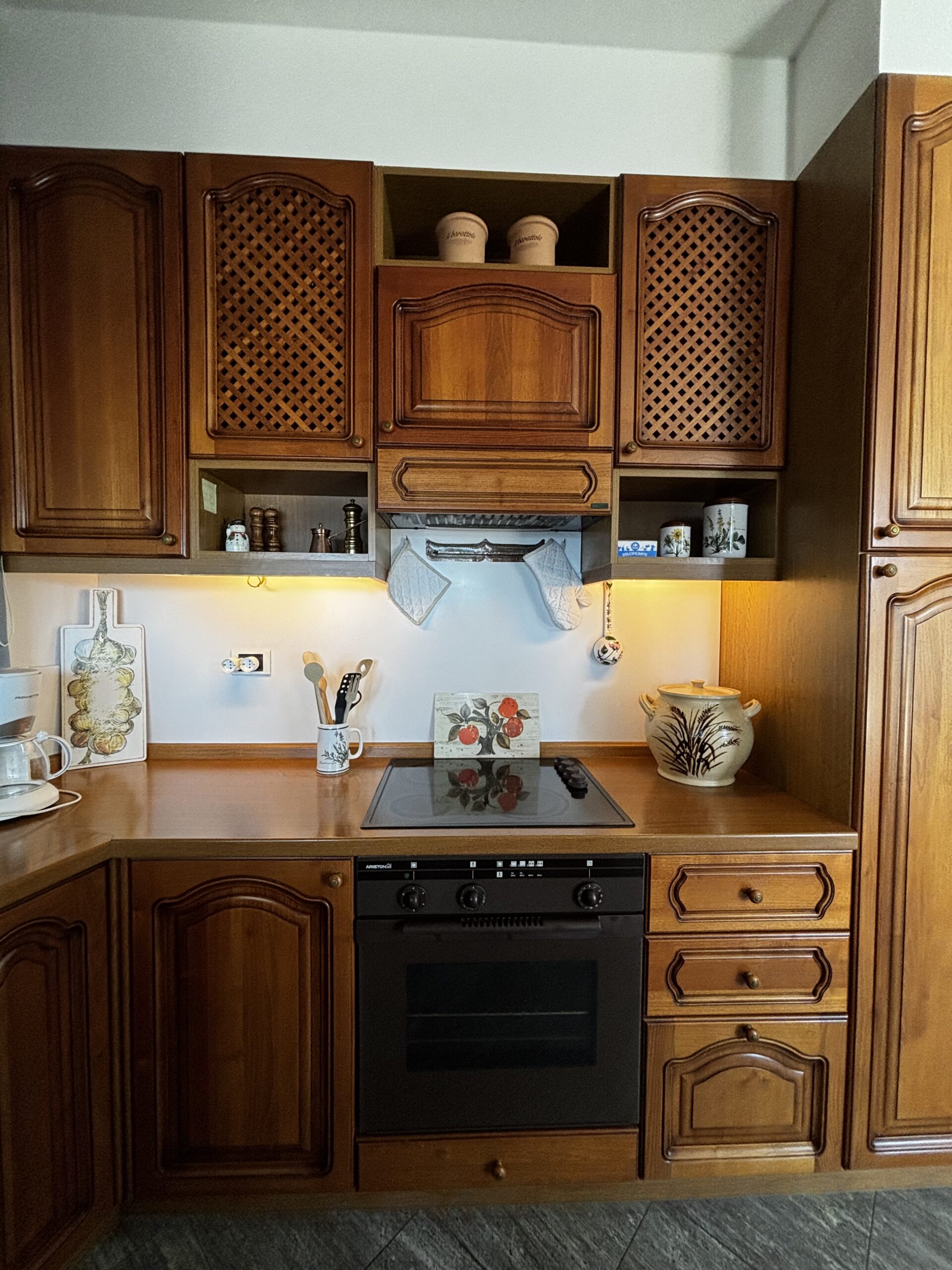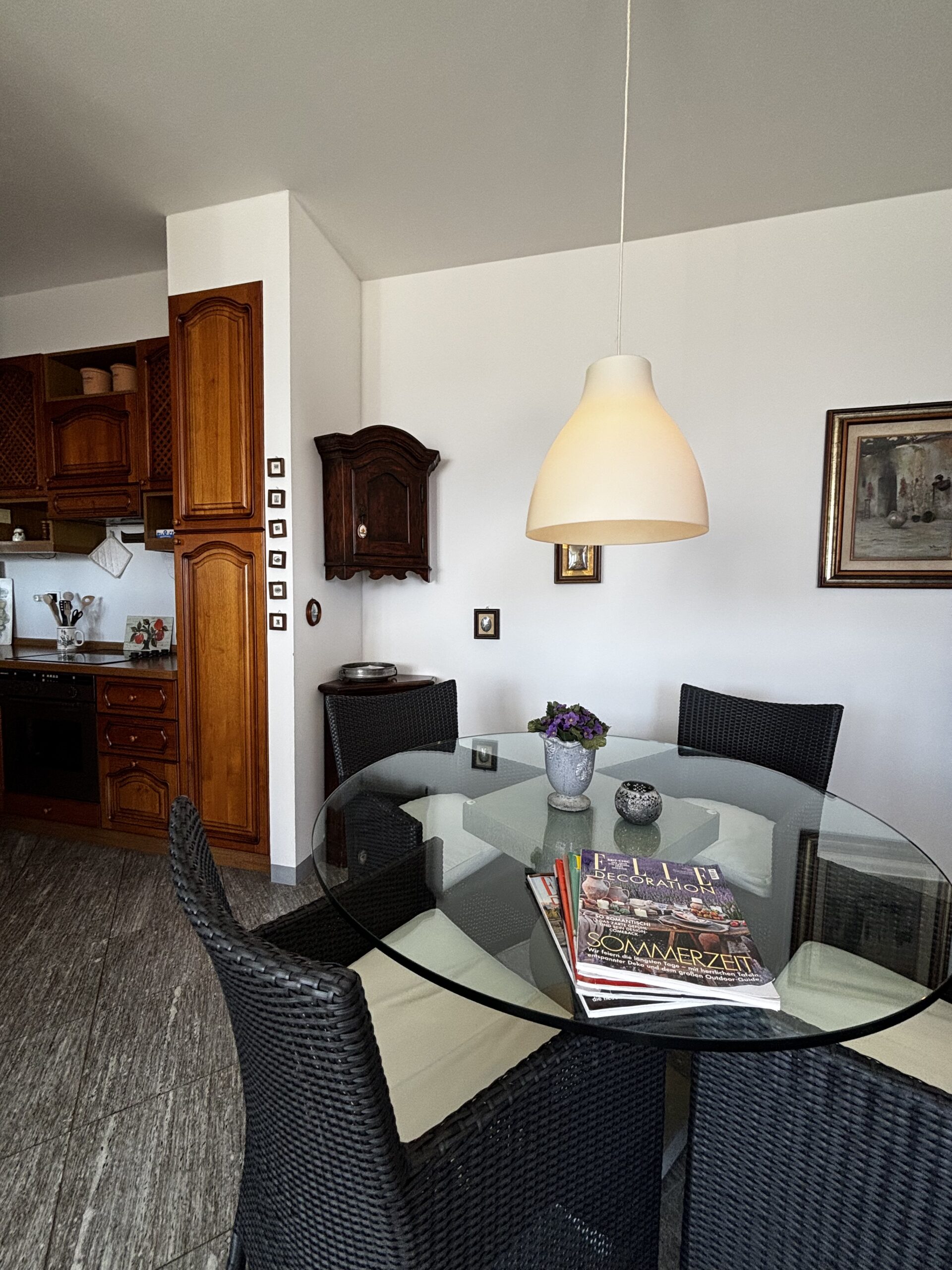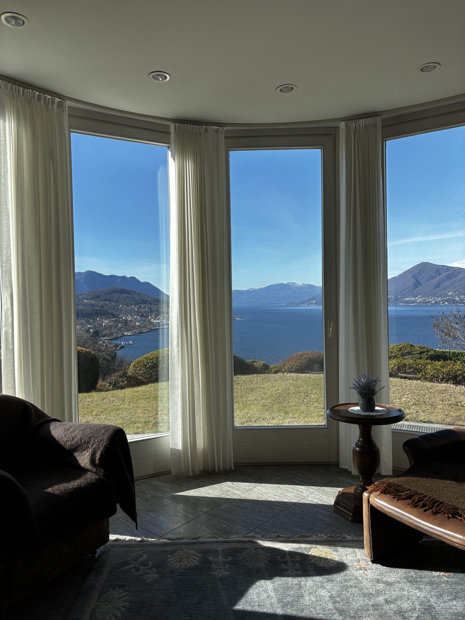 Die Wohnung mit einer Fläche von ca. 55 m² ist hervorragend und angenehm eingerichtet und ihre Besonderheit ist das majestätische halbrunde Panoramafenster, das einen wunderbaren Blick auf den Lago Maggiore bietet. Das Haus besteht aus einem großen und hellen Wohnzimmer mit einem kleinen, aber einladenden Essbereich, einer voll ausgestatteten und funktionalen offenen Küche, einem Badezimmer und einem geräumigen Schlafzimmer mit insgesamt zwei Betten.