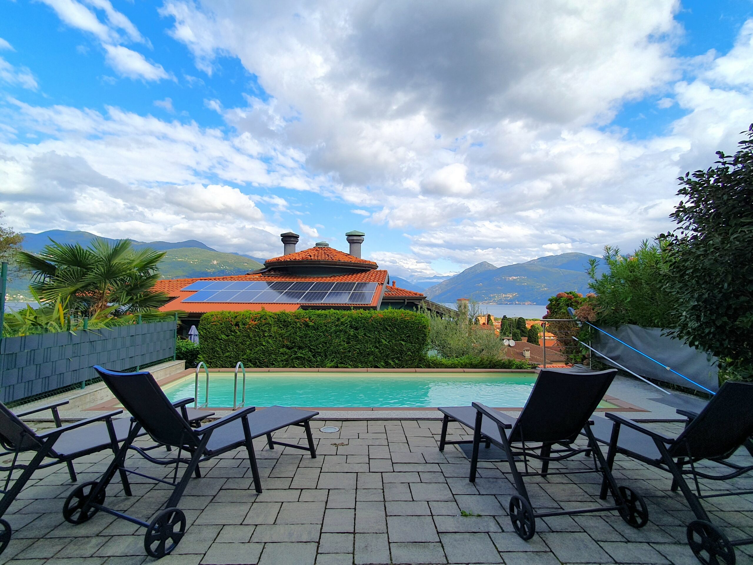 In einem ruhigen Wohngebiet von Germignaga, nur wenige Meter vom Strand entfernt, befindet sich ein schönes, kürzlich renoviertes und modern eingerichtetes Doppelhaus, ausgestattet mit einem Swimmingpool, dessen Fläche von etwa 90 Quadratmetern sich über 2 Etagen erstreckt. Auf beiden Etagen gibt es jeweils eine eigenständige Wohnung, eine Dreizimmerwohnung mit großer Terrasse mit herrlichem Blick auf den Lago Maggiore im oberen Stockwerk und eine Zweizimmerwohnung, ebenfalls mit Terrasse mit Loungebereich am Pool, im unteren Stockwerk. Beide Wohnungen bestehen aus einem geräumigen Wohnzimmer mit Essbereich und Küchenzeile, von denen eine einfacher und die andere viel besser ausgestattet ist, Nebengebäuden, einem einfachen Badezimmer und 1 Schlafzimmer, zu Lasten des Obergeschosses, das mit einem zusätzlichen Schlafzimmer ausgestattet ist, für insgesamt 6 Betten.