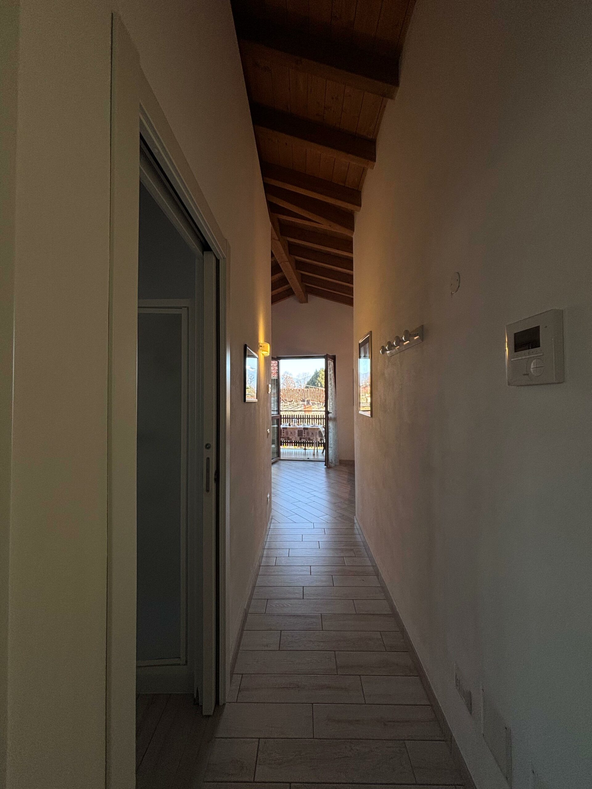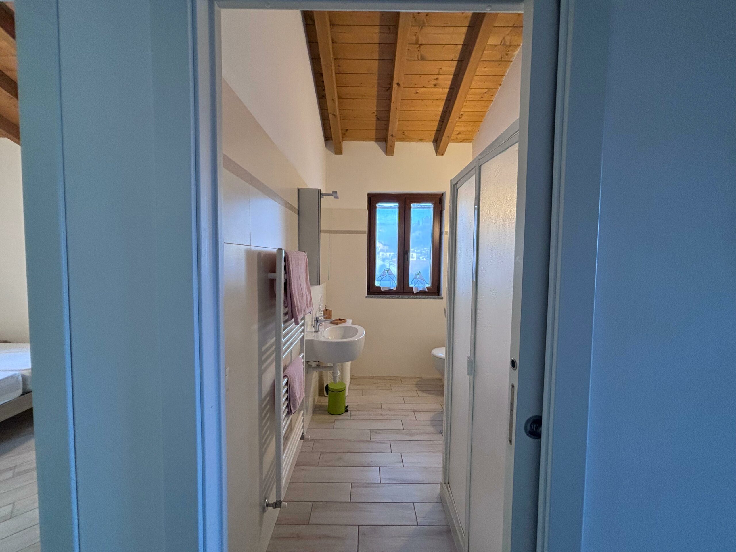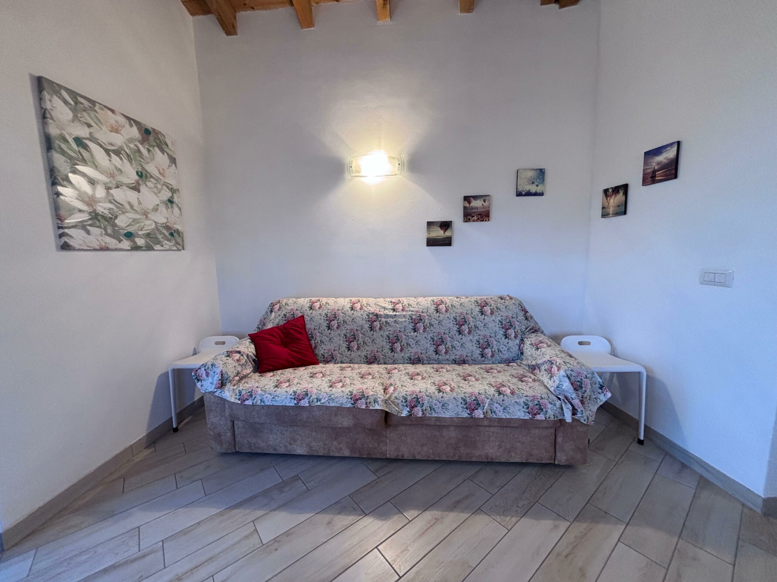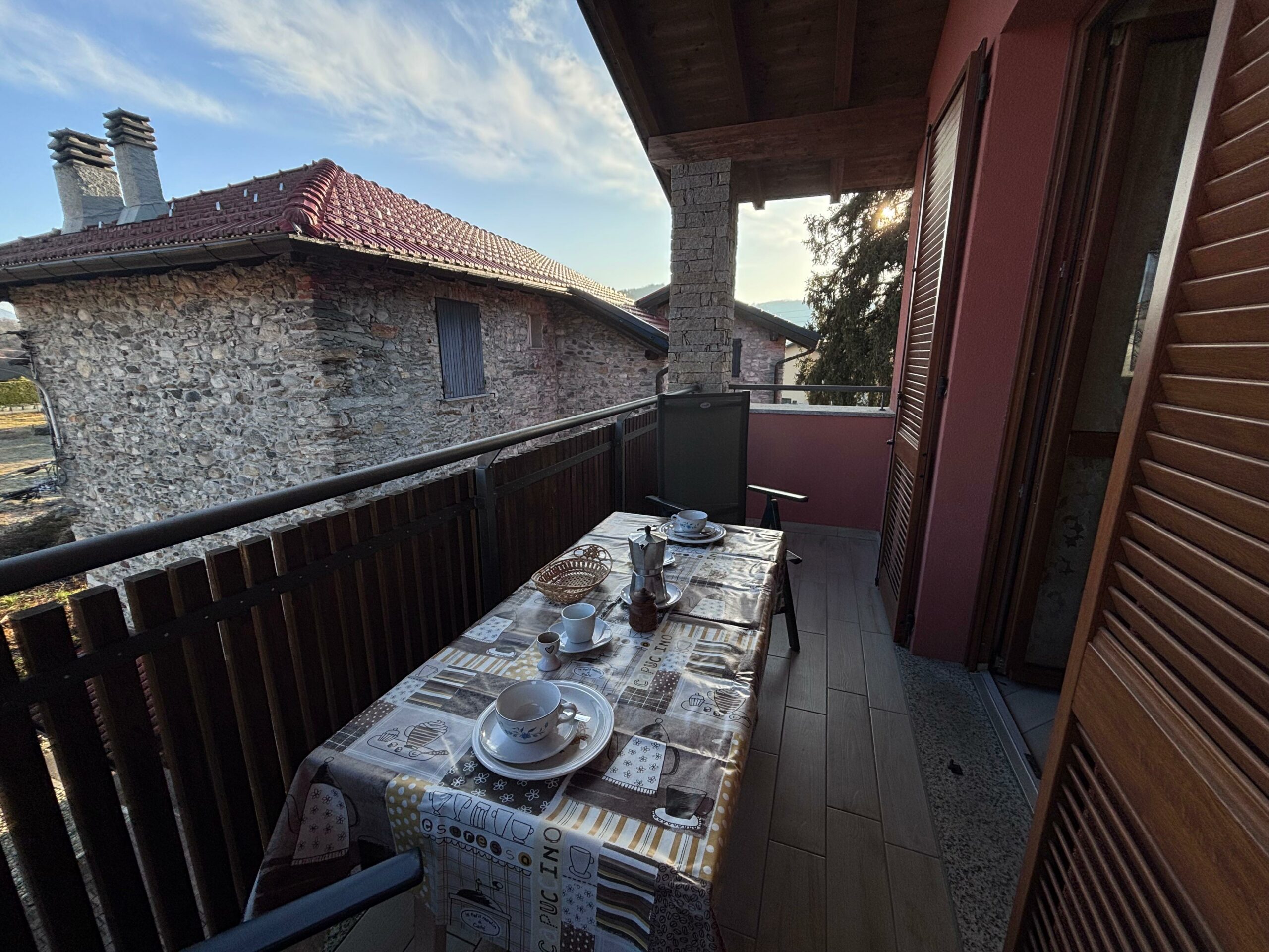 Das Haus besteht aus einem großen Wohnzimmer mit einer voll ausgestatteten offenen Küche und einem bequemen Esstisch, der sich perfekt für gemeinsames Frühstück und Abendessen eignet. Der Wohnbereich öffnet sich zu einem Panoramabalkon mit Tisch und Stühlen, von dem aus man den Blick auf das Dorf und die Berge genießen kann: ein idealer Ort, um sich an der frischen Luft zu entspannen.