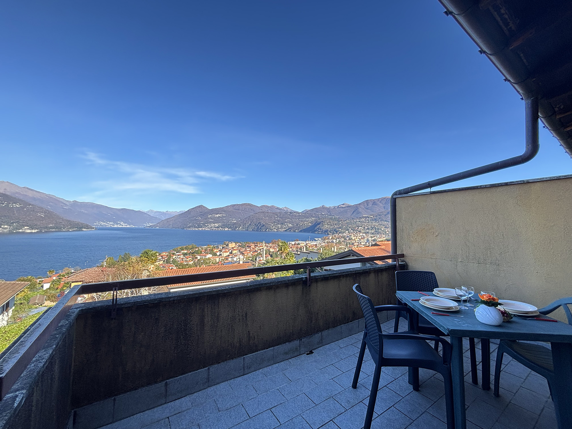 In angenehmer und ruhiger Panoramalage, mit herrlicher Sicht auf den etwa 1,2 km entfernten Lago Maggiore, steht ein kleiner Reihenhäuserkomplex.