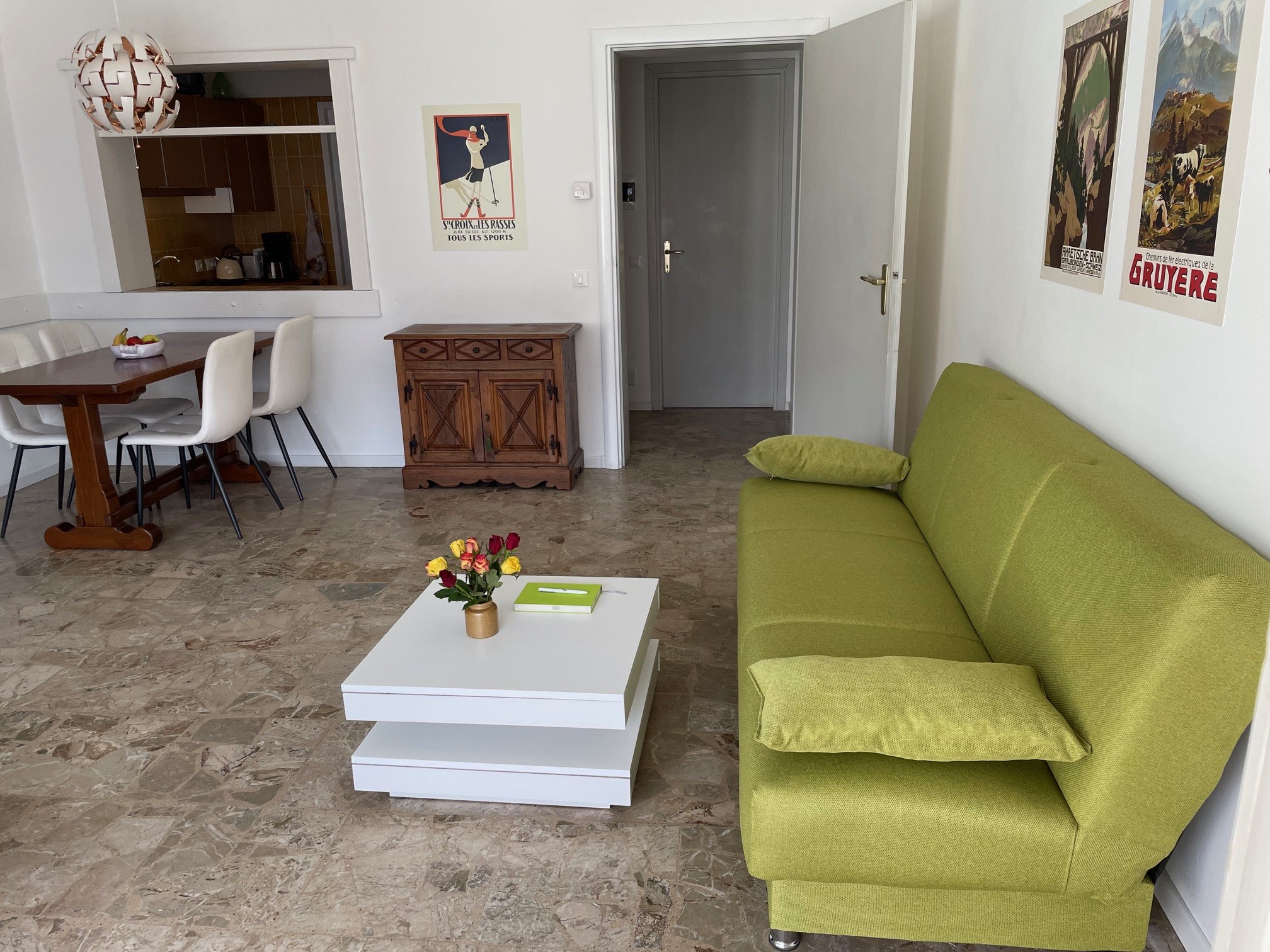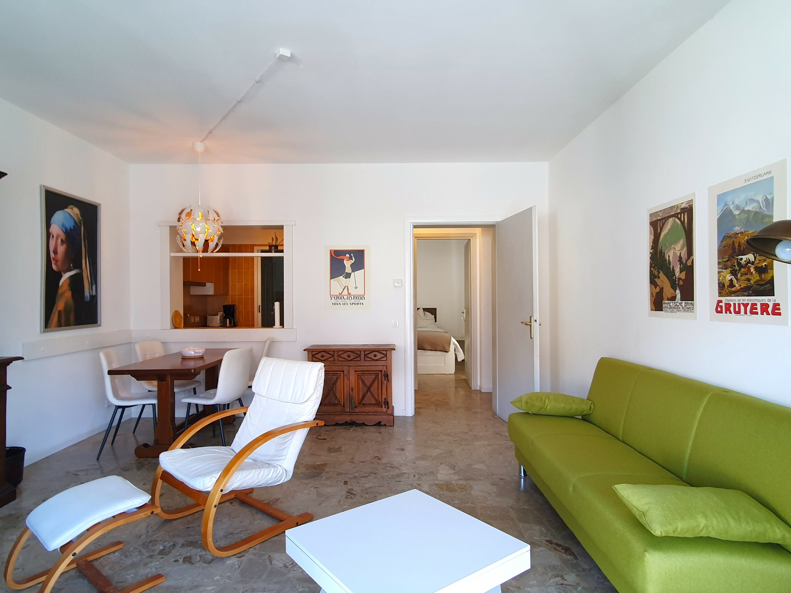 Das Apartment besteht aus einem hellen und modernen Wohnzimmer, ausgestattet mit einem bequemen Schlafsofa und einer kleinen, aber funktionalen Küchenzeile, einem luxuriösen Badezimmer und einem großen Schlafzimmer mit insgesamt 4 Betten.