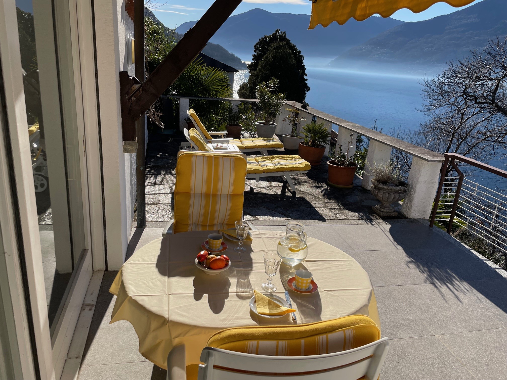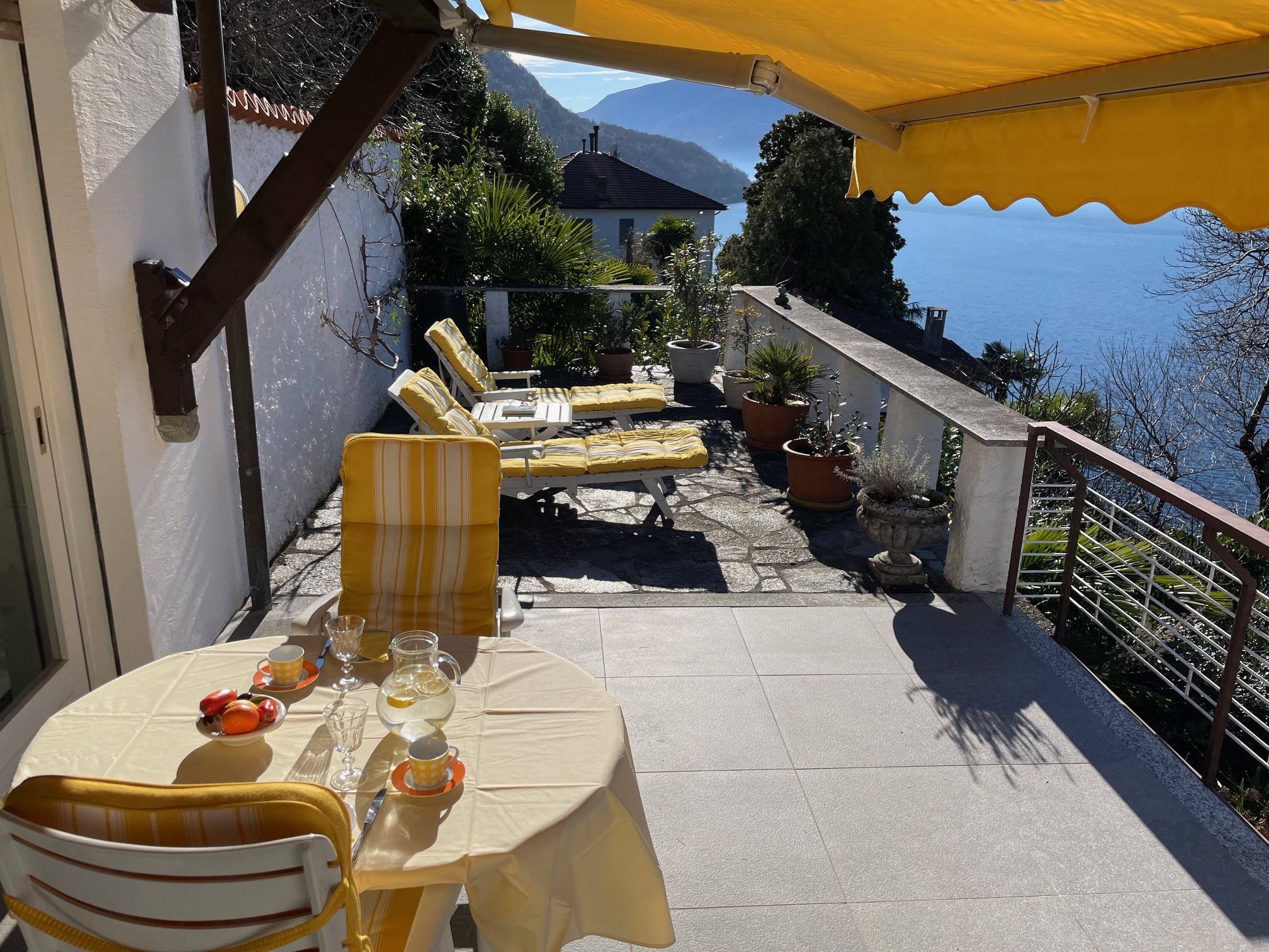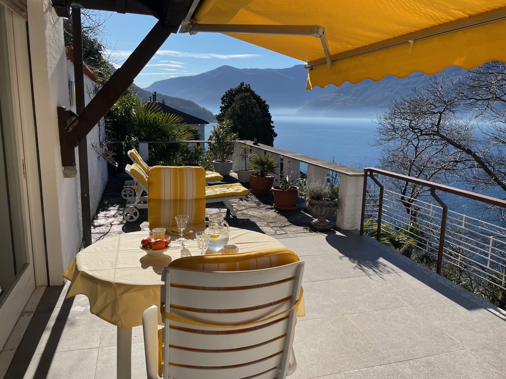 Diese charmante und moderne Zweizimmerwohnung mit einer Fläche von ca. 50 m² befindet sich im Erdgeschoss der Casa Roccia und bietet dank der wunderschönen, direkt am Seeufer errichteten Terrasse, die mit einem Esstisch und Stühlen, Markisen und Sonnenliegen ausgestattet ist, einen herrlichen Blick auf den Lago Maggiore.