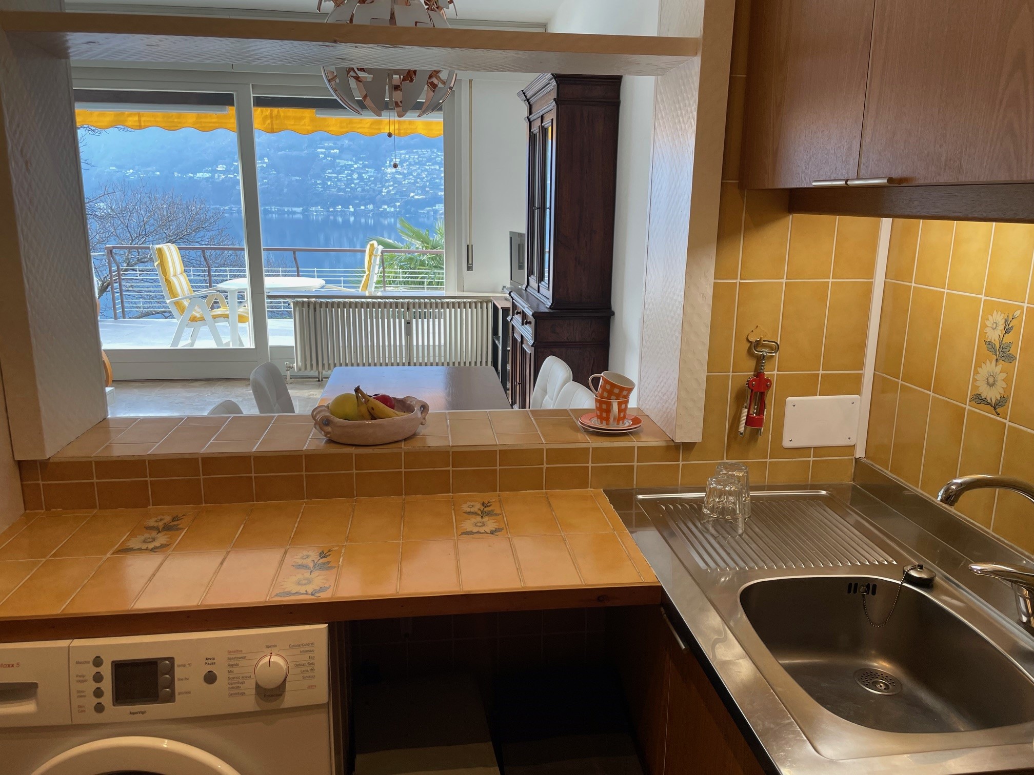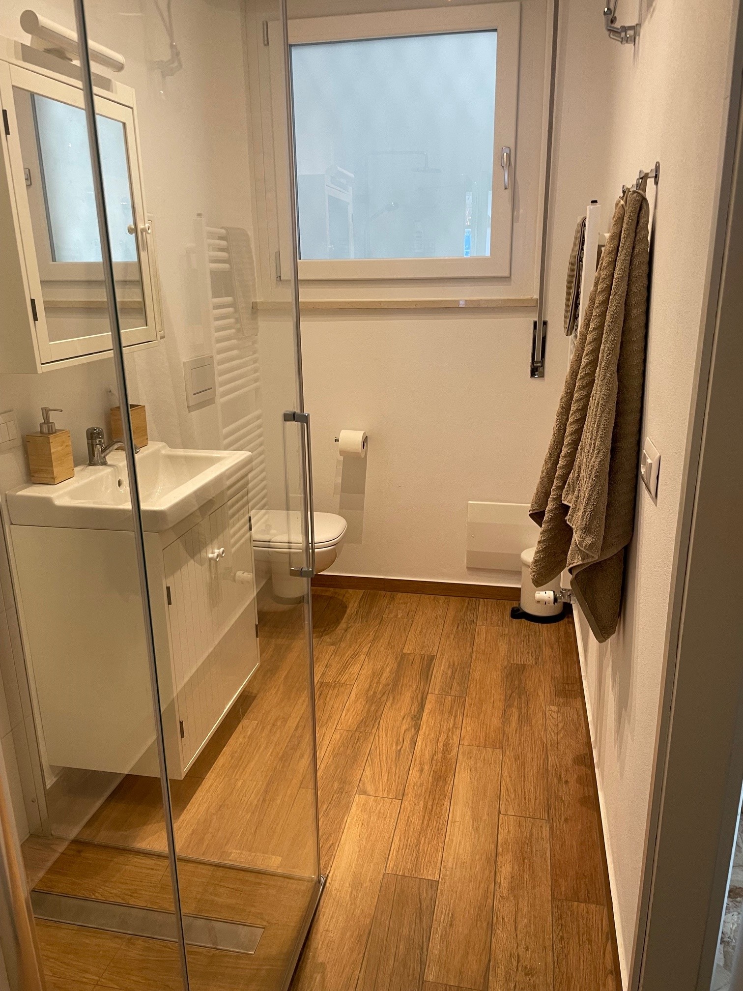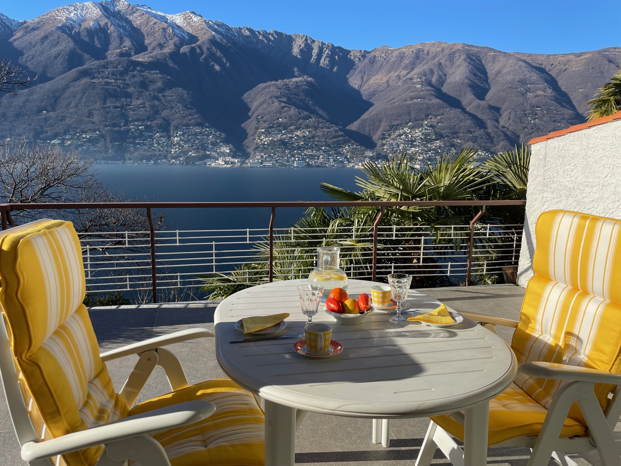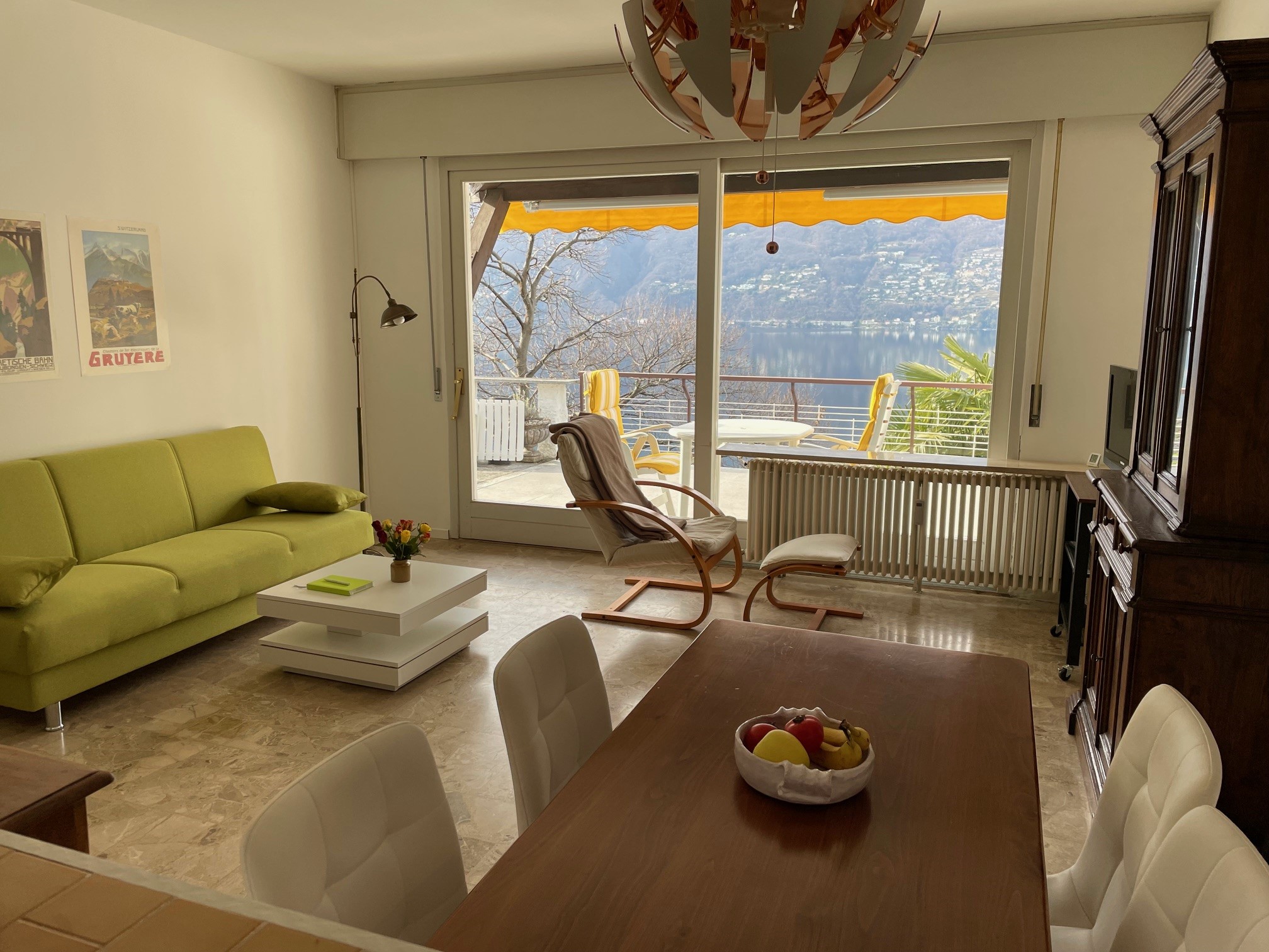 Diese charmante und moderne Zweizimmerwohnung mit einer Fläche von ca. 50 m² befindet sich im Erdgeschoss der Casa Roccia und bietet dank der wunderschönen, direkt am Seeufer errichteten Terrasse, die mit einem Esstisch und Stühlen, Markisen und Sonnenliegen ausgestattet ist, einen herrlichen Blick auf den Lago Maggiore.
