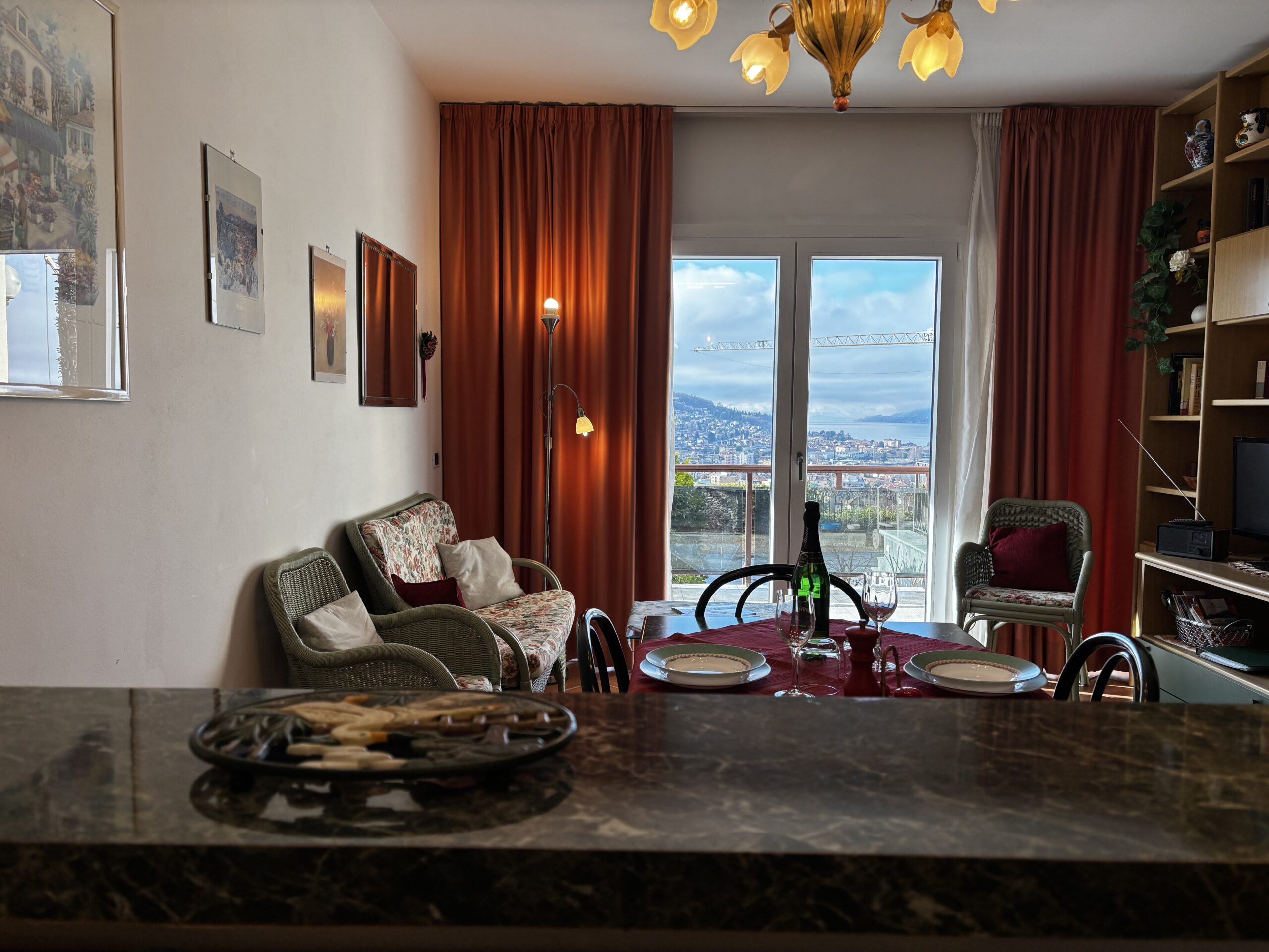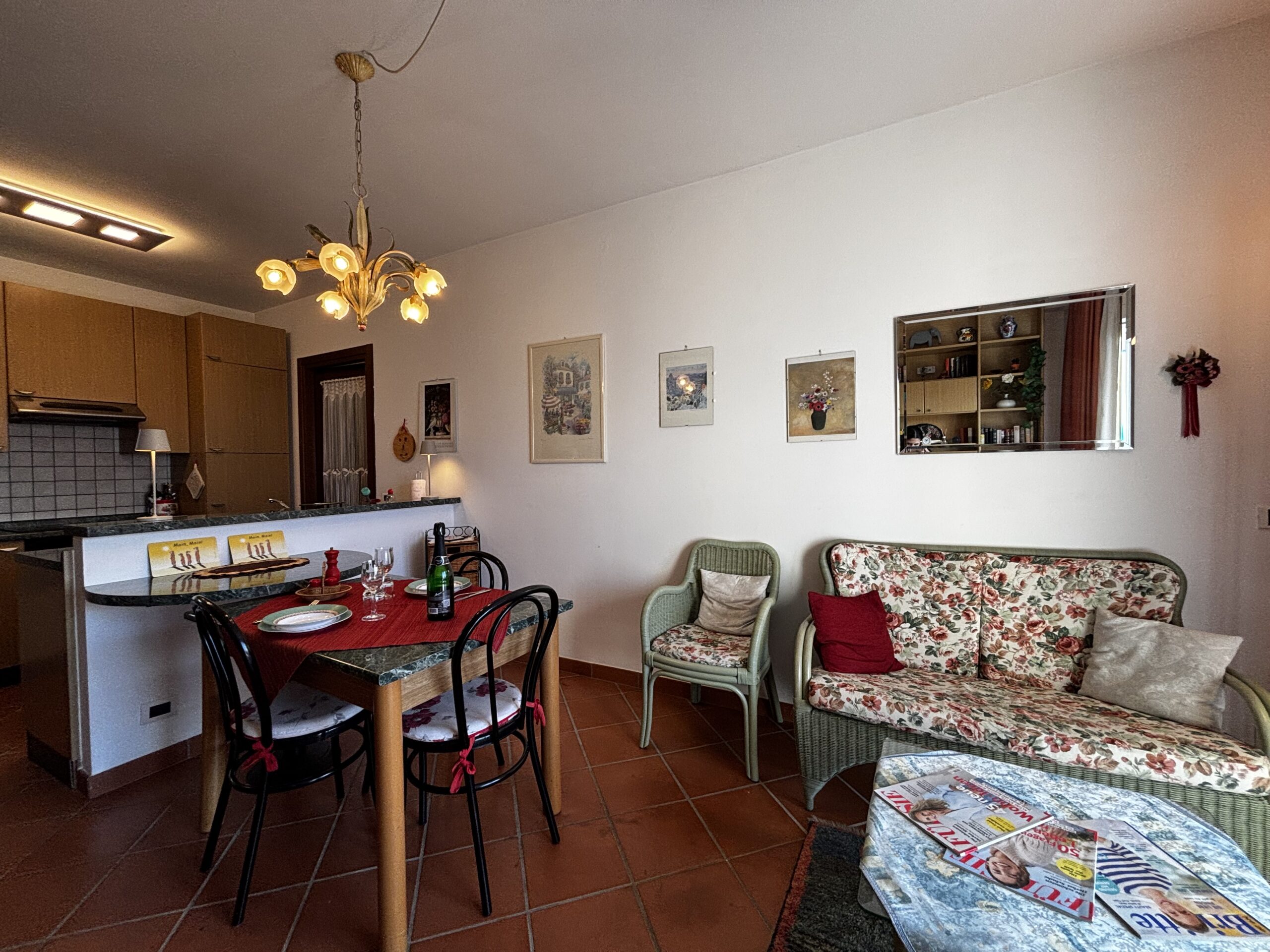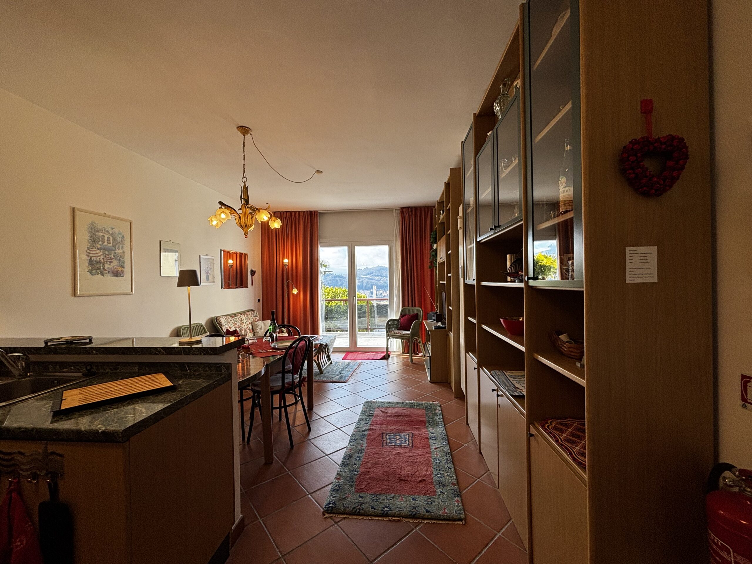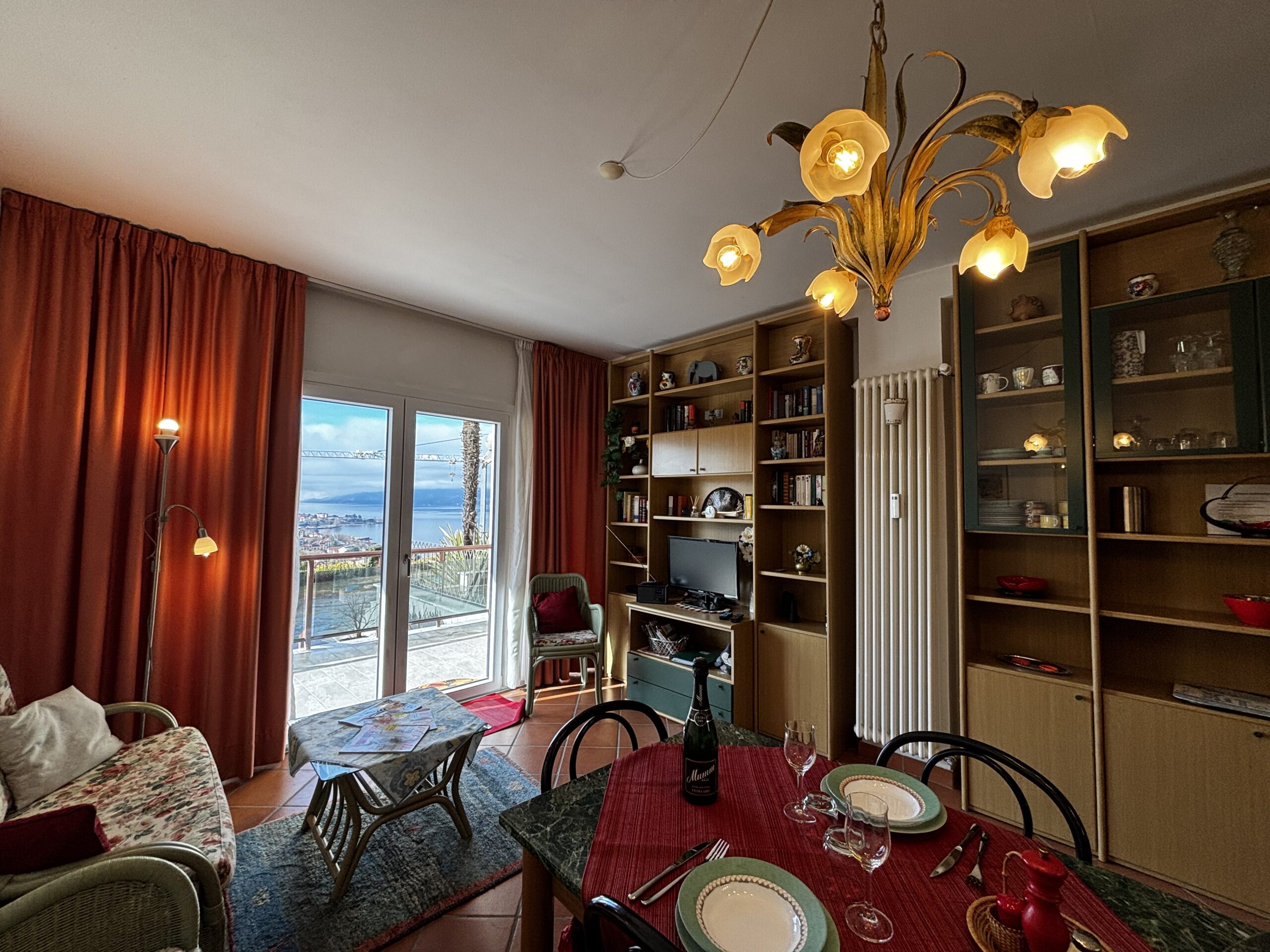 Im ersten Stock der charmanten Wohnanlage befindet sich eine Zweizimmerwohnung mit einer Fläche von ca. 60 m², gut möbliert und mit einem großen Balkon ausgestattet, dessen Blick auf den Lago Maggiore und Luino sie sehr malerisch macht. Die Wohnung besteht aus einem kleinen, aber hellen Wohnzimmer, ausgestattet mit einem schönen Essbereich und einer funktionalen Küchenzeile, einem sehr hellen Badezimmer und 1 Schlafzimmer mit insgesamt 2 Betten.