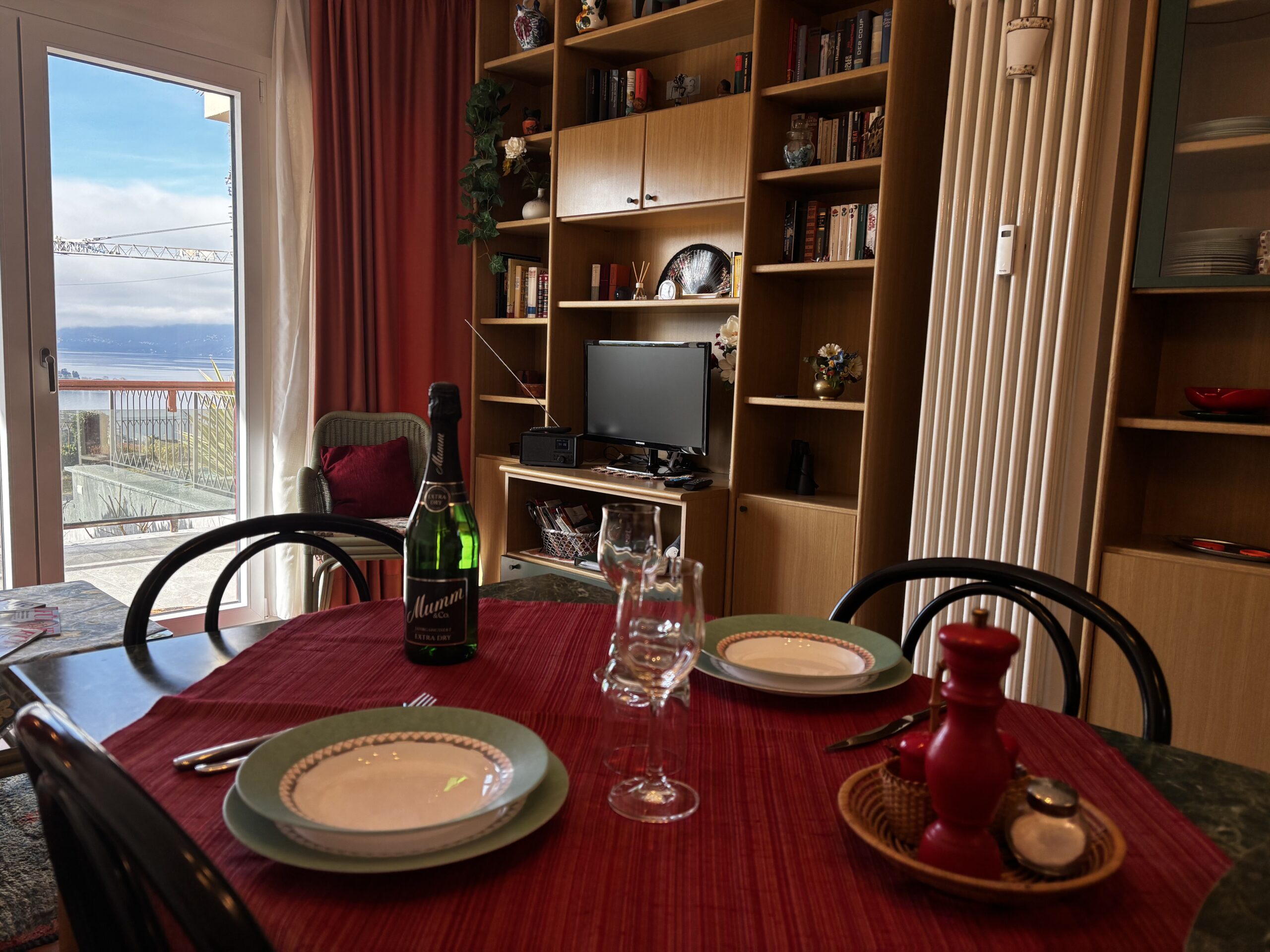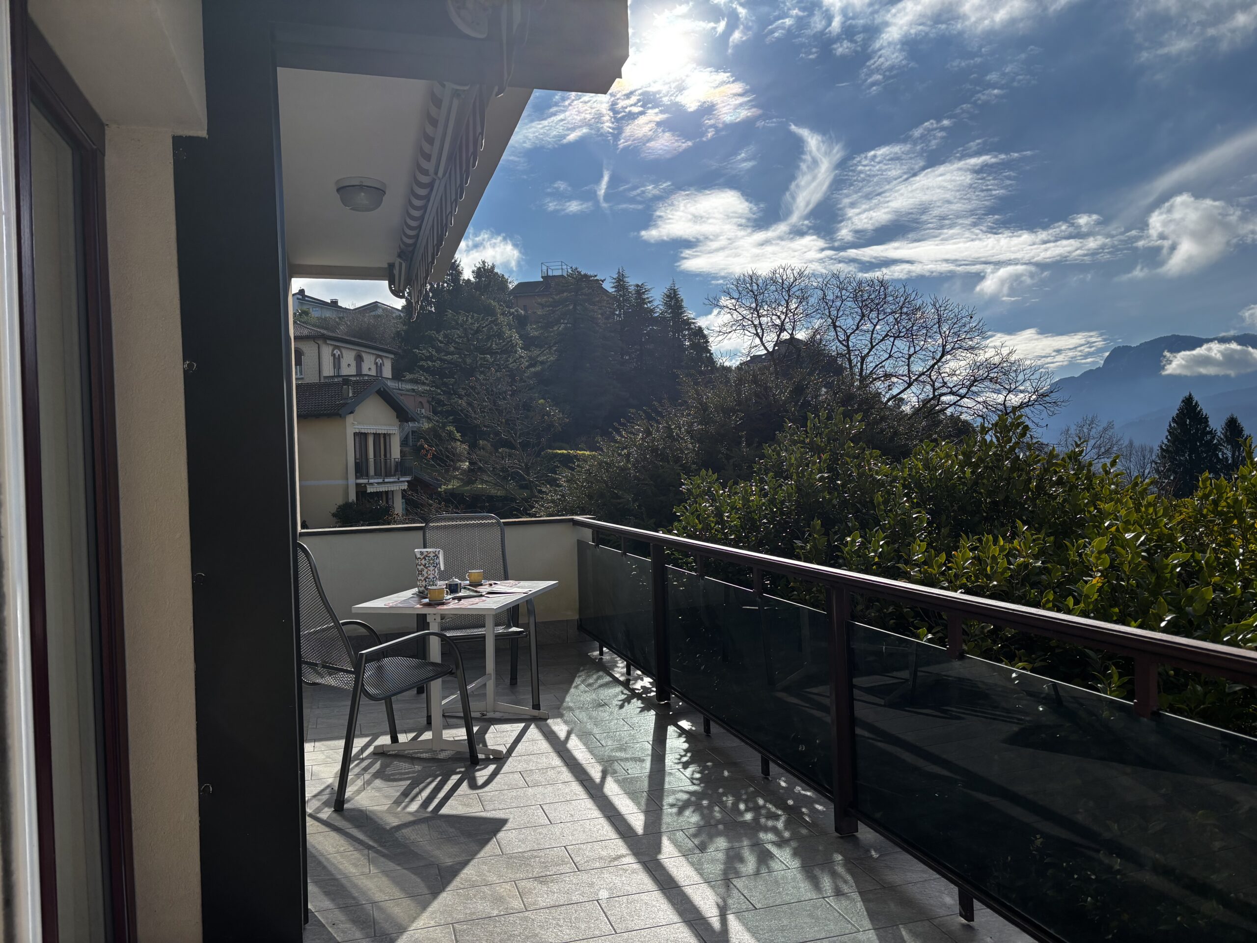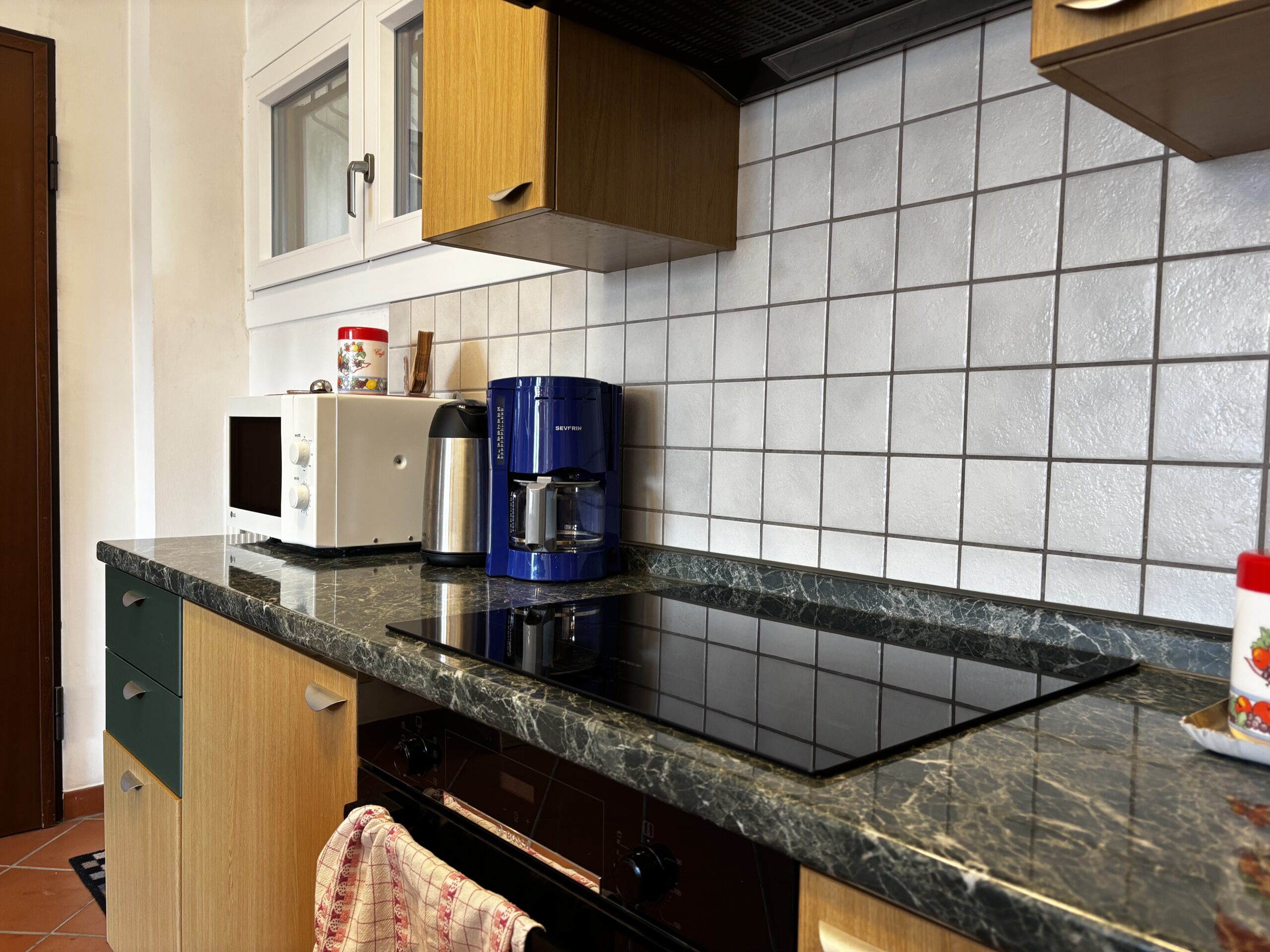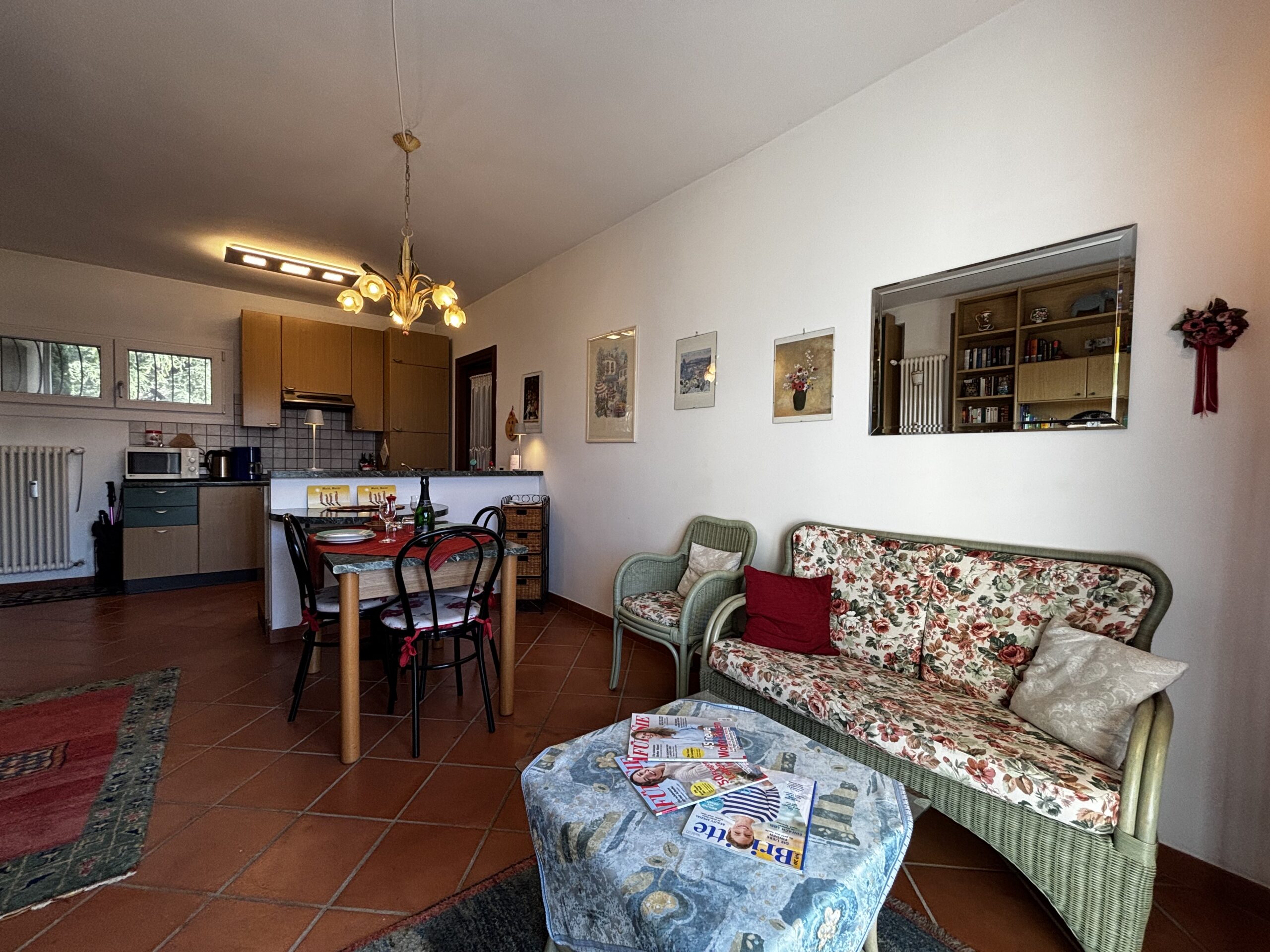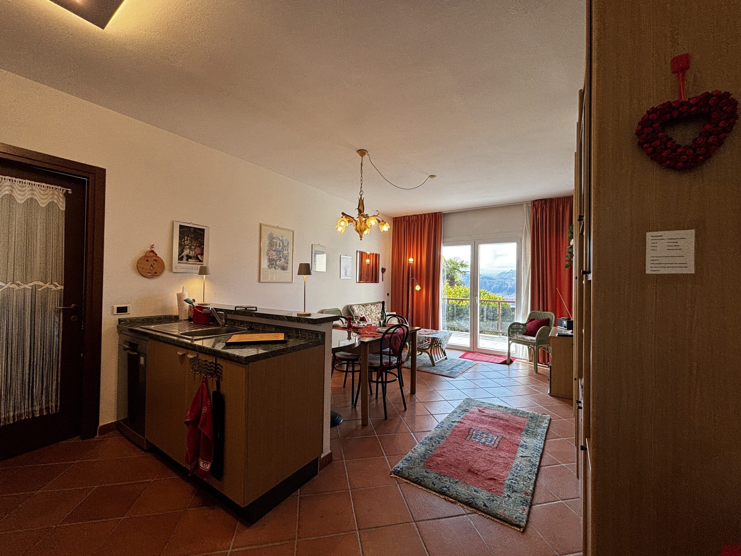 Im ersten Stock der charmanten Wohnanlage befindet sich eine Zweizimmerwohnung mit einer Fläche von ca. 60 m², gut möbliert und mit einem großen Balkon ausgestattet, dessen Blick auf den Lago Maggiore und Luino sie sehr malerisch macht. Die Wohnung besteht aus einem kleinen, aber hellen Wohnzimmer, ausgestattet mit einem schönen Essbereich und einer funktionalen Küchenzeile, einem sehr hellen Badezimmer und 1 Schlafzimmer mit insgesamt 2 Betten.